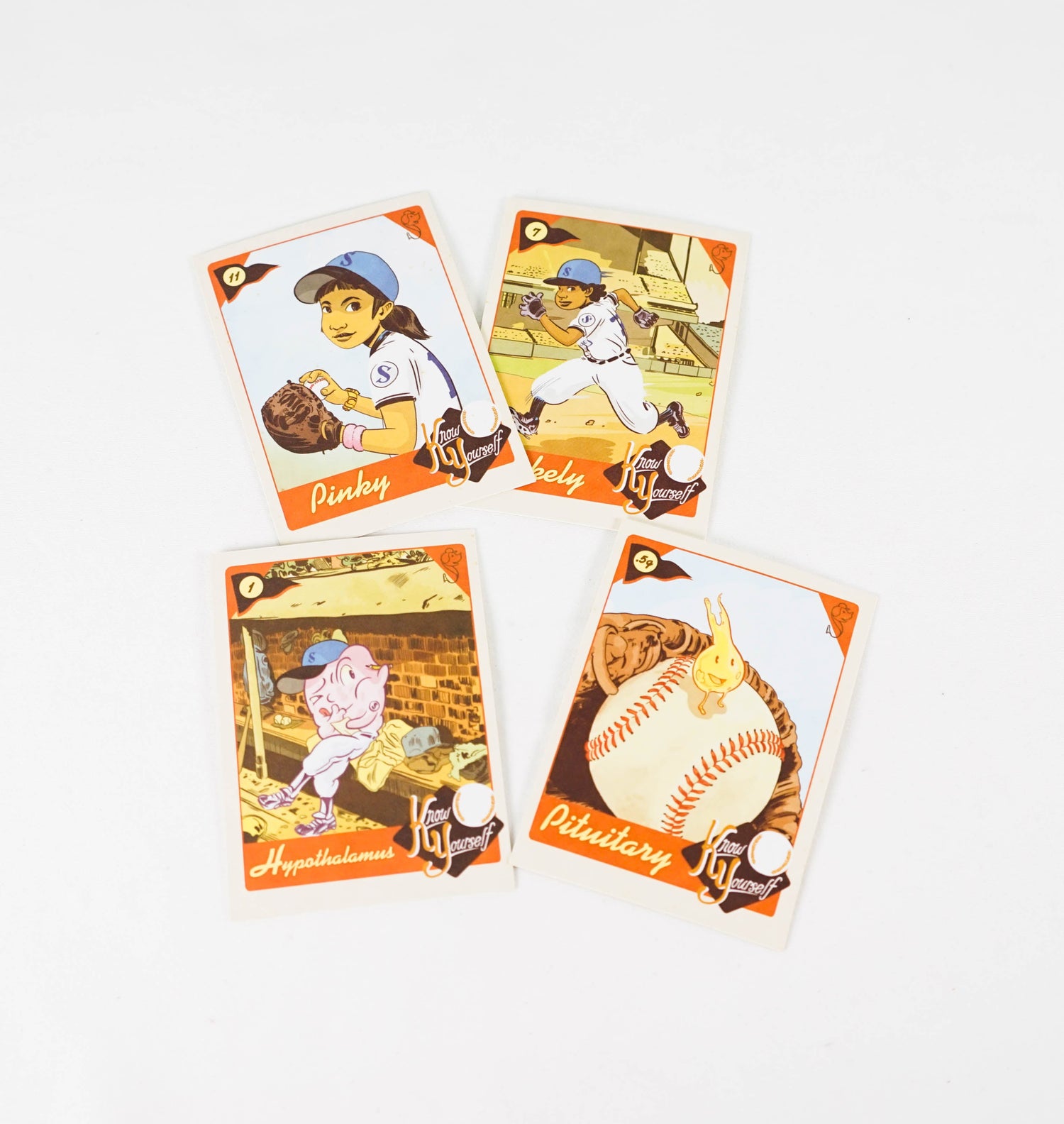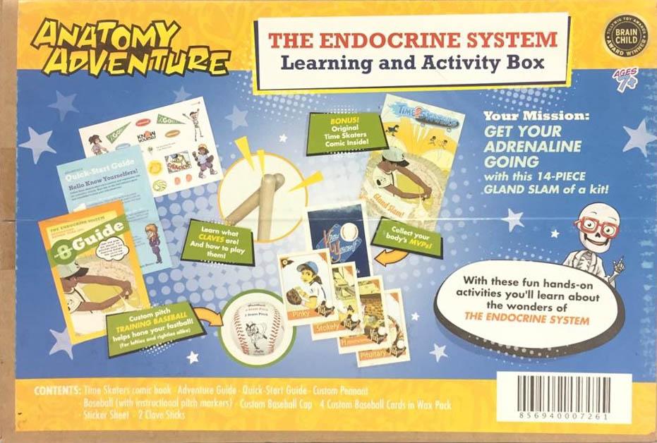 The Endocrine system your mission: are you Giddy to get movement? Good. Let's keep that adrenaline rush. Get in the outfield and get ready to play ball with the oddest body system of them all. threaded hormones and growth spurts and - Oh My. How does your Endocrine system help you grow up? 3 Strikes, you're out. Our custom Pitch Instructing Baseball works for both right and left handed players. Get your Rhumba on with Keys, a percussion instrument that helps you keep your rhythm. MVP of this year? The pituitary Gland. Take a look at our Custom Trading Cards to find out more. Time to round the knowledge bases with this amazing activity kit, where they come together to produce a one-of-a-kind experience, science, baseball, and fun. Shipping time: Comic skaters; Adventure guide; Custom Pennant; baseball pitch markers (with instructions); 2 key sticks; custom - Baseball cap; Four Personalized Baseball Cards in Wax Pack; stickers; Getting started guide.