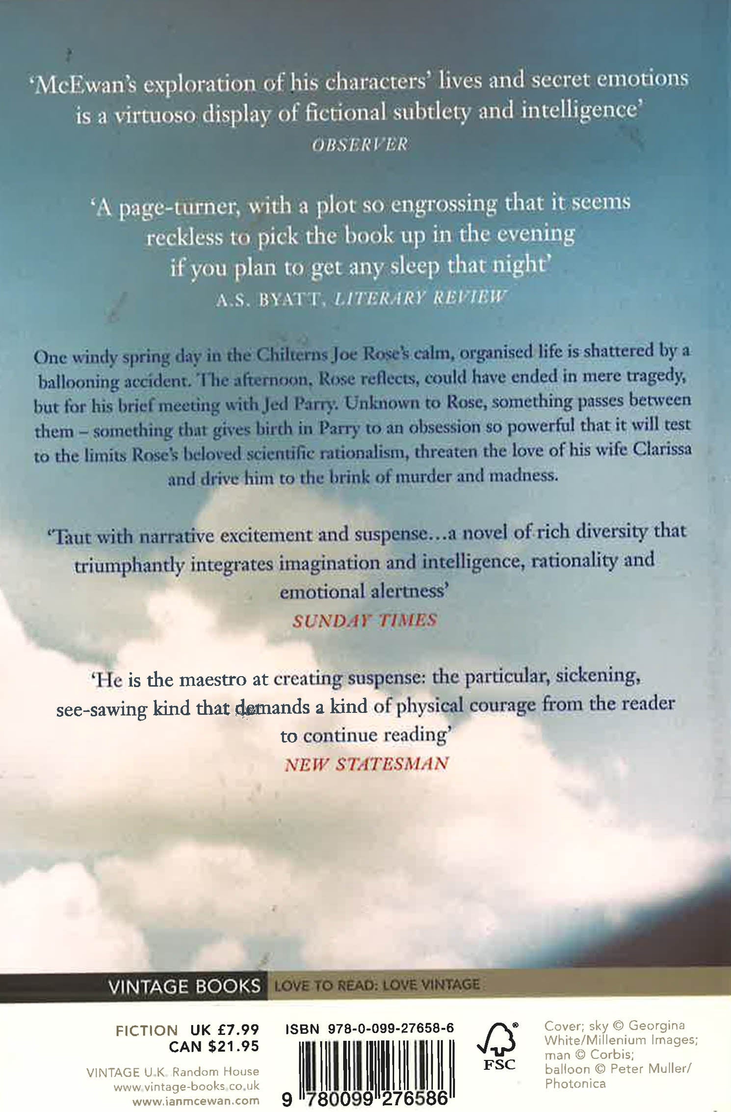 Unknown to Joe, something passes between them - something that gives birth in Parry to an obsession so powerful that it will test to the limits Joe's beloved scientific rationalism, threaten the love of his wife Clarissa and drive him to the brink of murder and madness. One windy spring day in the Chilterns Joe Rose's calm, organised life is shattered by a ballooning accident. The afternoon could have ended in mere tragedy, but for his brief meeting with Jed Parry. Unknown to Joe, something passes between them - something that gives birth in Parry to an obsession so powerful that it will test to the limits Joe's beloved scientific rationalism, threaten the love of his wife Clarissa and drive him to the brink of murder and madness.