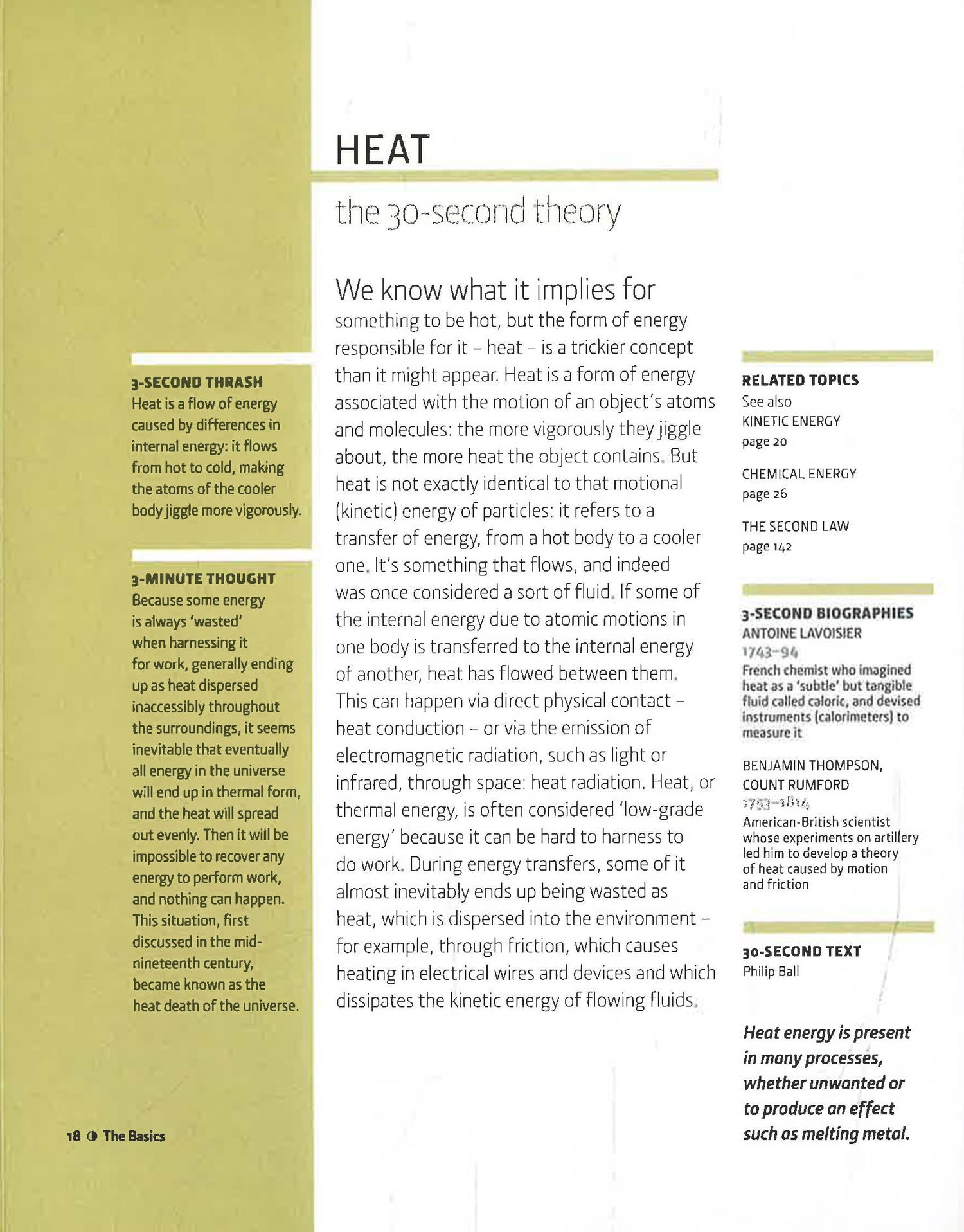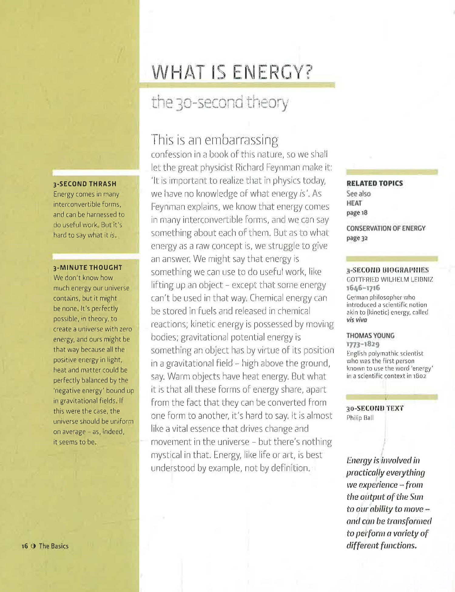 30-Second Energy charts the fascinating and fundamental topics behind this phenomenon that resides in everywhere and in everything. Exploring energy as it is best understood - by example - discover how it cannot be created or destroyed, only transformed, and how plankton and other ocean-dwelling organisms can be used to power your car. From the nuclear fusion reactor at the heart of the sun to the elusive dark energy which makes up most of the content of the universe, each topic is summarized in just half a minute using no more than two pages, 300 words and one picture.