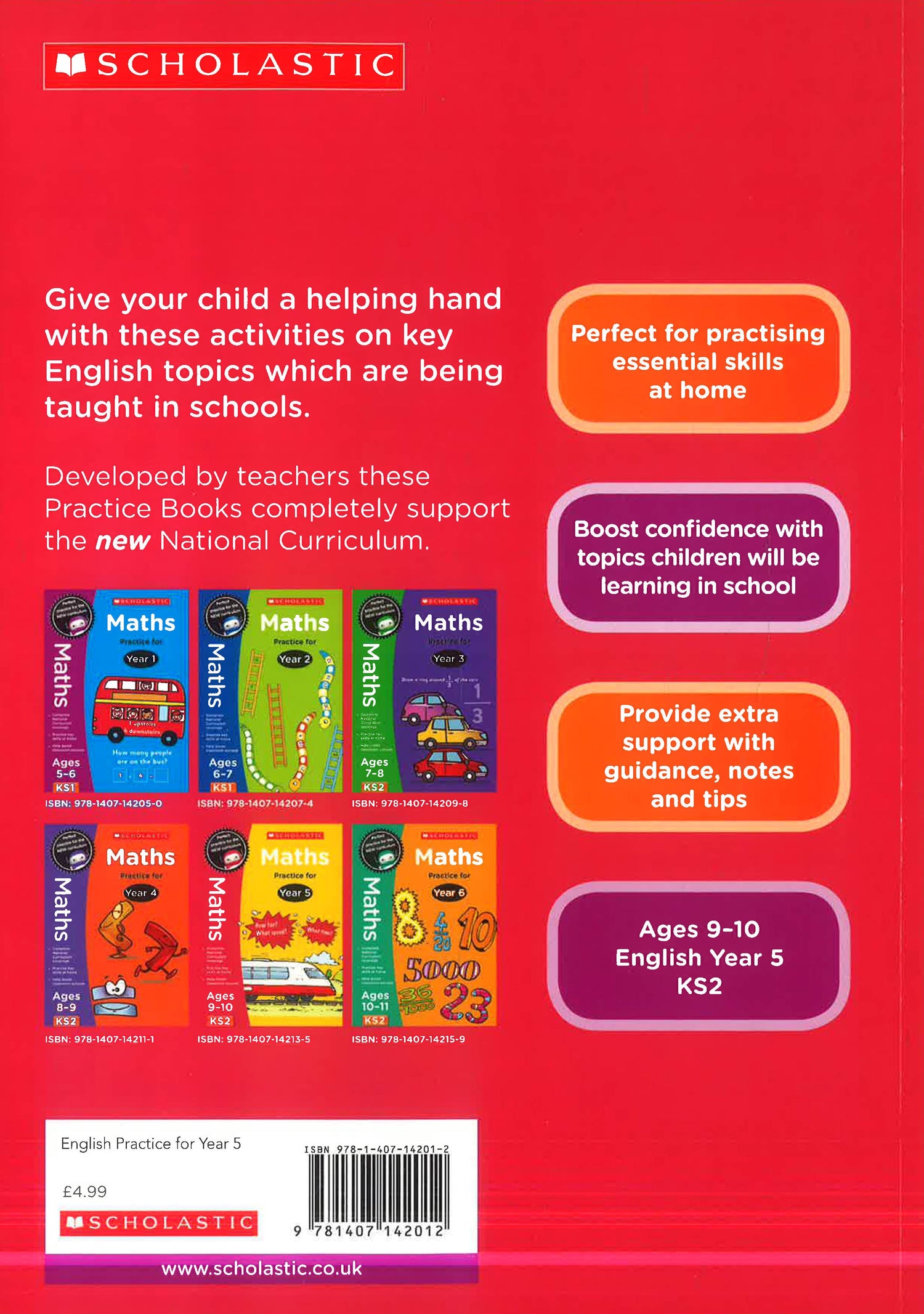Did you know that your child in Year 5 will now need to; distinguish between statements of facts and opinion; spell words with silent letters (such as 'knight'); use modal verbs in writing ('can', 'could', 'might' and so on)? Give your child a helping hand with these perfect practice workbooks covering key English topics which are being taught in schools. Developed by teachers to support the new 2014 National Curriculum, these activities will help to boost confidence with key English skills, with extra guidance on every page to make sure your child gets the best possible support with their school work. Content for this Workbook has been taken directly from 100 Practice Activities: National Curriculum English Practice Book - Year 5