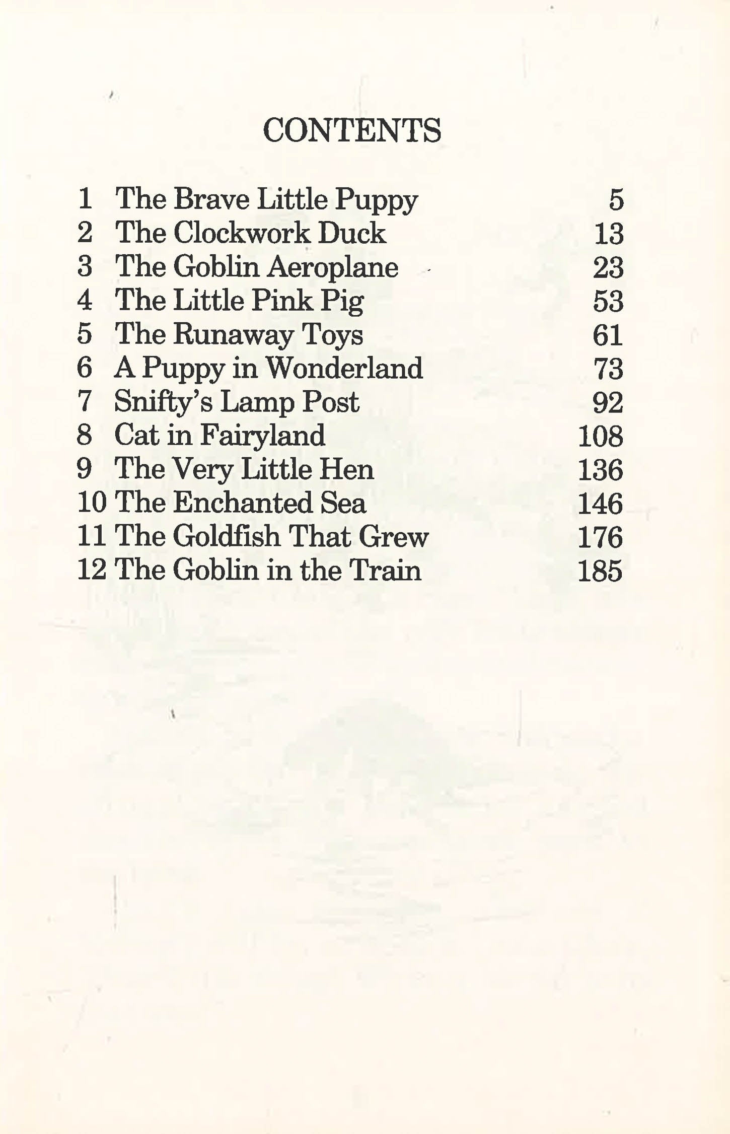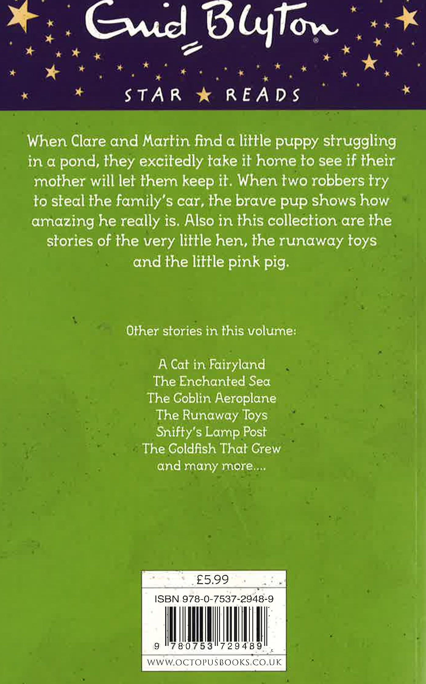When Clare and Martin find a little puppy struggling in a pond, they excitedly take it home to see if their mother will let them keep it. When two robbers try to steal the family's car, the brave pup shows how amazing he really is. Also in this collection are the stories of the very little hen, the runaway toys and the little pink pig. Other stories in this volume: A Cat in Fairyland The Enchanted Sea The Goblin Aeroplane The Runaway Toys Snifty's Lamp Post The Goldfish That Grew and many more...