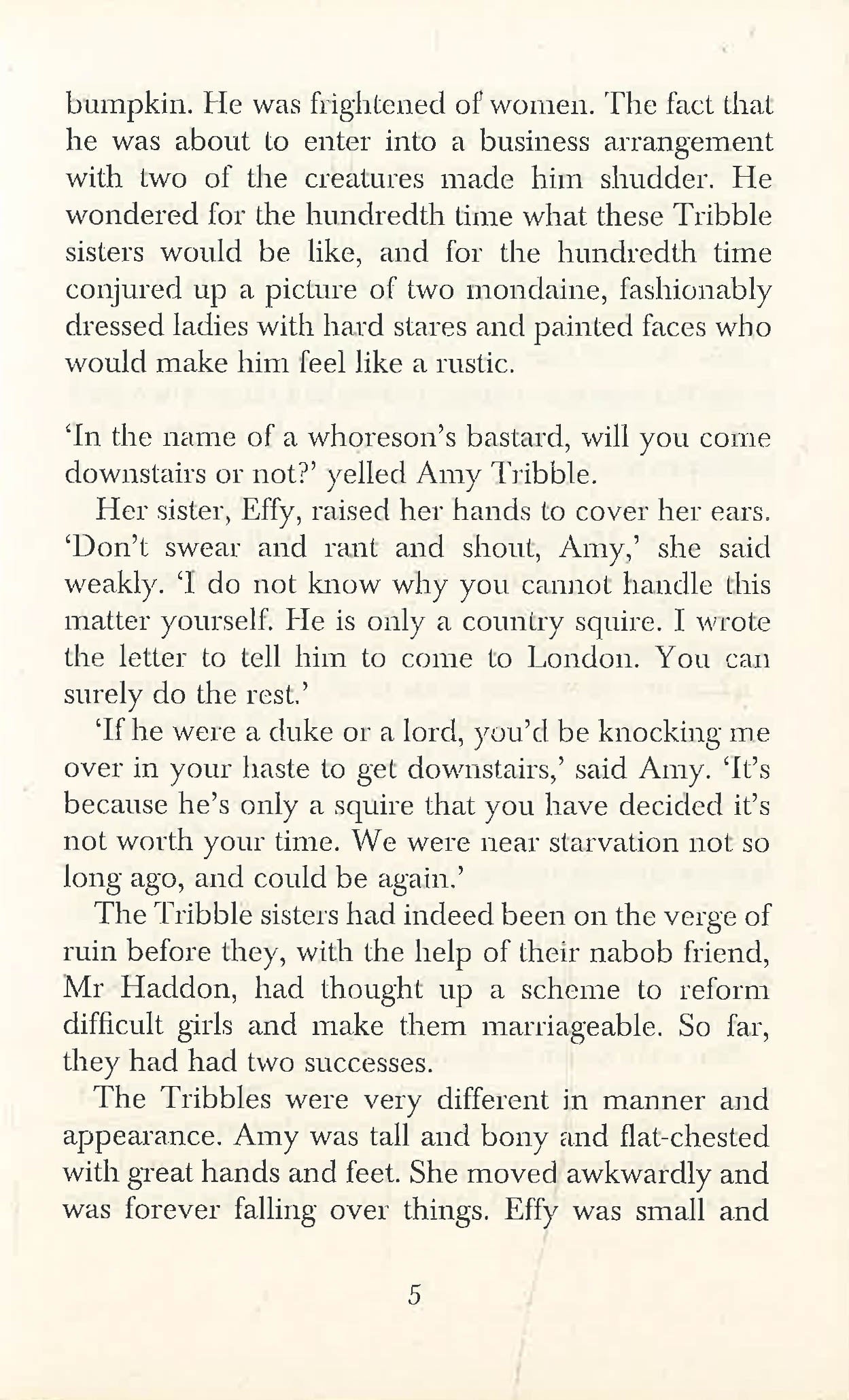When Amy and Effie Tribble, two charming but impoverished spinster sisters, lose out on an inheritance, they place this advertisement in The Morning Post and hire themselves out as professional chaperones. Vowing to prepare even the most difficult misses for marriage, the Tribble sisters will spend a London season on each client, educating them in their School for Manners.