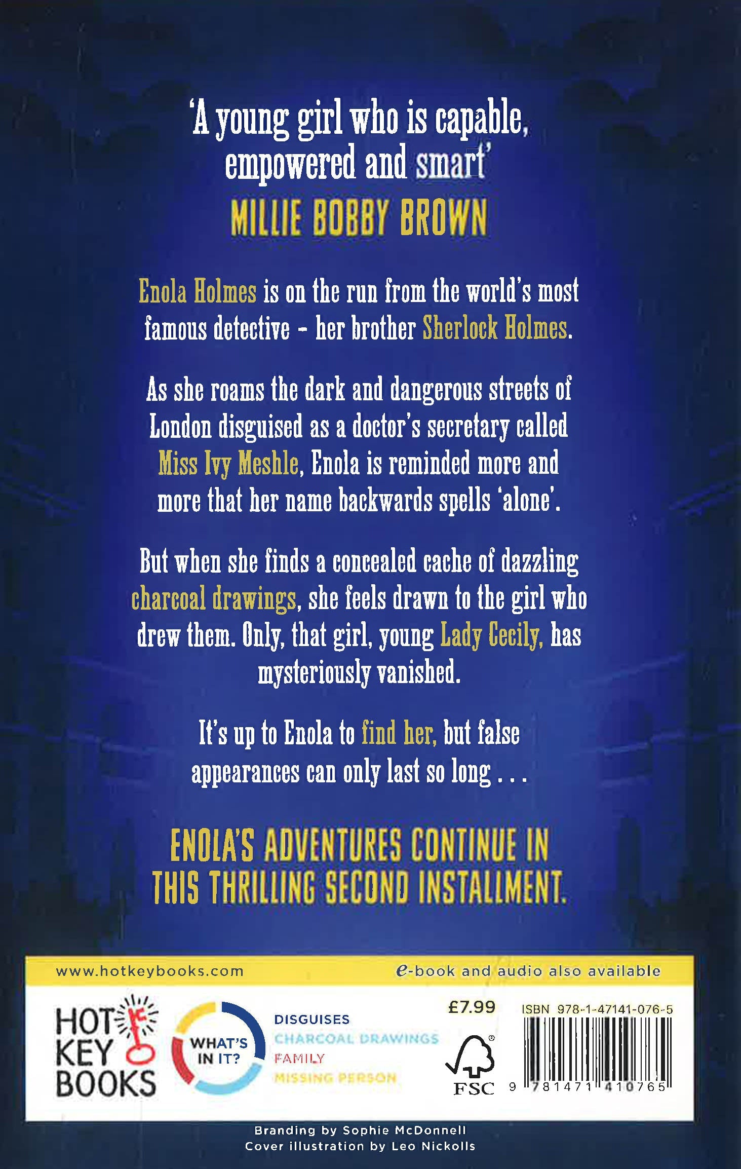 Reintroducing London's newest and greatest detective: Enola Holmes in this second exciting mystery - from the series that inspired the film starring Millie Bobby Brown. 'A story of a young girl who is empowered, capable, and smart . . . the Enola Holmes book series convey an impactful message to kids and teenagers all over the world that you can do anything if you set your mind to it, and it does so in an exciting and adventurous way.' Millie Bobby Brown Enola Holmes is on the run from the world's most famous detective - her brother Sherlock Holmes. As she roams the dark and dangerous streets of London disguised as a doctor's secretary called Miss Ivy Meshle, Enola is reminded more and more that her name backwards spells 'alone'. But when she finds a concealed cache of dazzling charcoal drawings, she feels drawn to the girl who drew them. Only, that girl, young Lady Cecily, has mysteriously vanished. It's up to Enola to find her, but false appearances can only last so long... Enola's adventures continue in this thrilling second instalment.