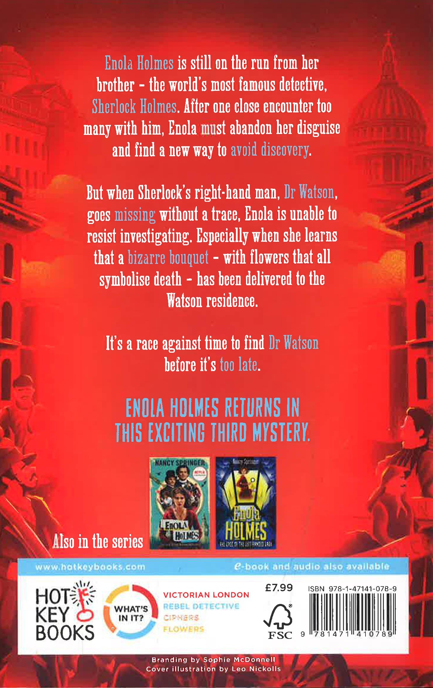 Follow London's newest and greatest detective, Enola Holmes, in her third captivating adventure - from the series that inspired the film, starring Millie Bobby Brown. 'A story of a young girl who is empowered, capable, and smart . . . the Enola Holmes book series convey an impactful message to kids and teenagers all over the world that you can do anything if you set your mind to it, and it does so in an exciting and adventurous way.' Millie Bobby Brown Enola Holmes is still on the run from her brother and world's most famous detective Sherlock Holmes. After one close encounter too many with him, Enola must abandon her disguise and find a new way to avoid discovery. But when Sherlock's right-hand man, Dr Watson, goes missing without a trace, Enola is unable to resist investigating. Especially when she learns that a bizarre bouquet - with flowers that all symbolise death - has been delivered to the Watson residence. It's a race against time to find Dr Watson before it's too late. Enola Holmes returns in this exciting third mystery.