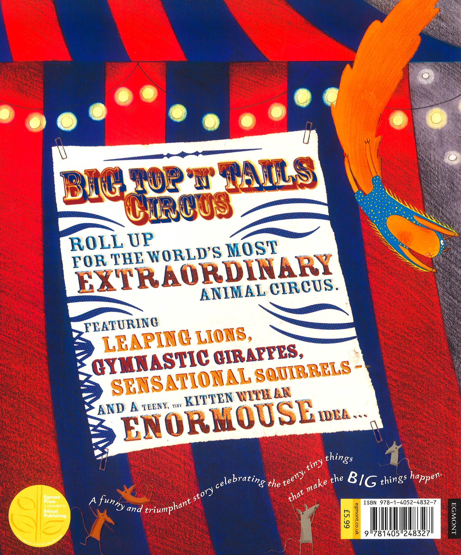 Long, long ago there lived a kitten. He was tiny. But he had big ideas...When the kitten drops in to a caravan filled with circus squirrels, they do their very best to build him into their act. But the kitten can't quite get the hand of it...However, his big ideas soon become ENORMOUSE, and the kitten - with help from a few mice - conjures up an amazing spectacle that will wow audiences around the world. This is an uplifting tale about the teeny, tiny things the big things are made of - perfect for young readers everywhere. Don't miss it!