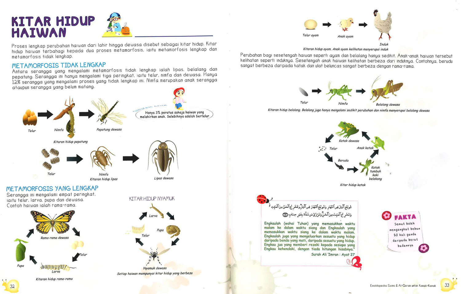 Menyelitkan potongan ayat-ayat ol-Quran beserta terjemahan yang berkaitan dengan fakta sains