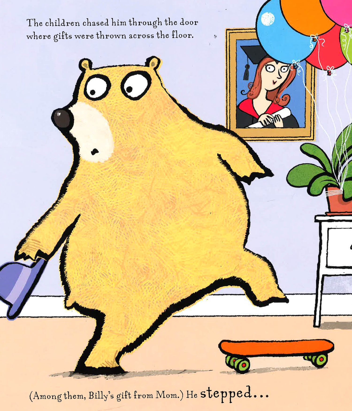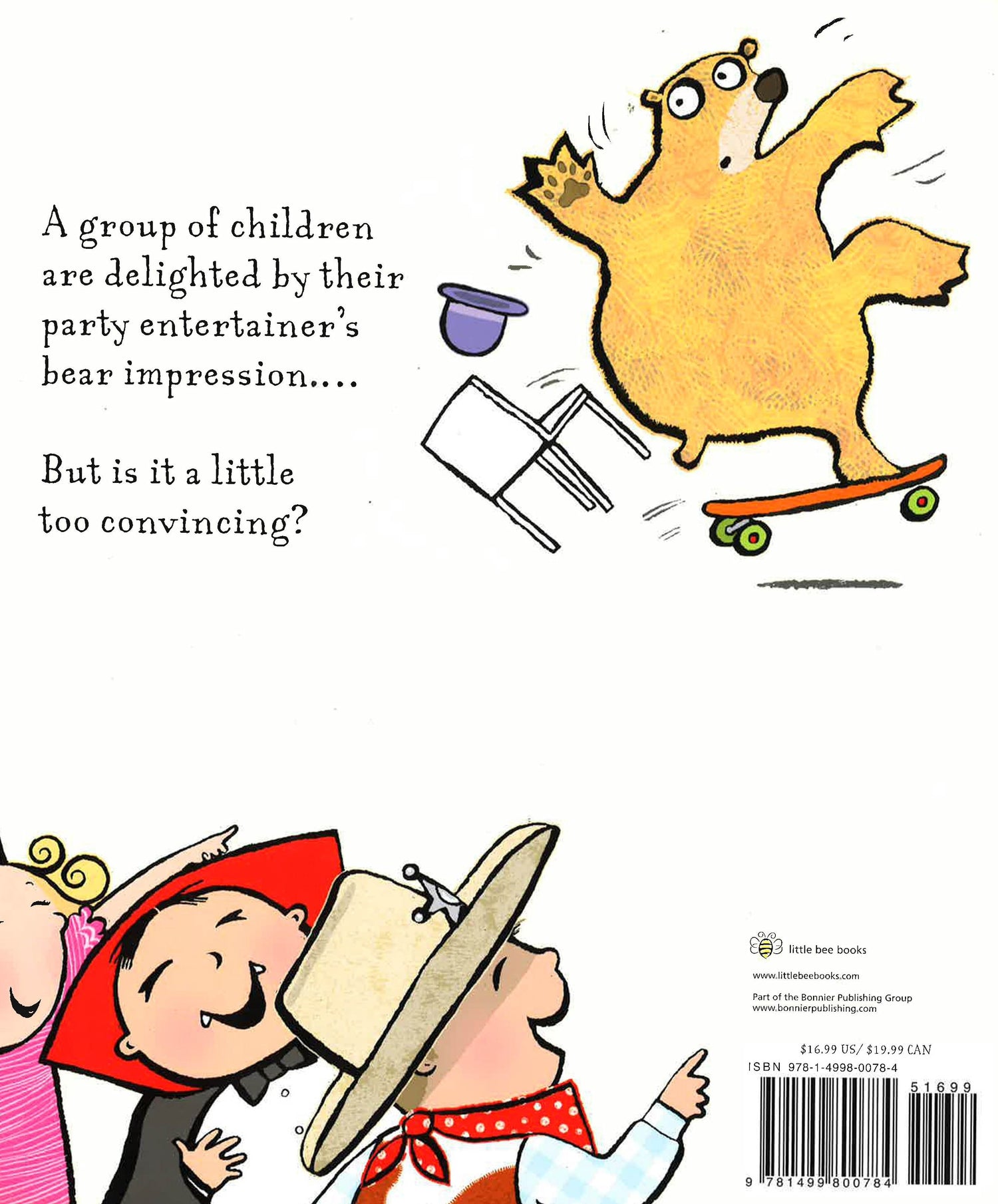 A hilarious new picture book about a bear and a little boy's birthday party from acclaimed author and illustrator, Emma Dodd. When an entertainer dressed as a big cuddly bear arrives at a little boy's birthday party, the children are delighted. He makes them hoot with laughter as he drinks water from the vase, goes wild on his skateboard, and bursts all the balloons. But for some reason, his costume won't come off... Acclaimed author and illustrator Emma Dodd has crafted a hilarious new story for young readers.