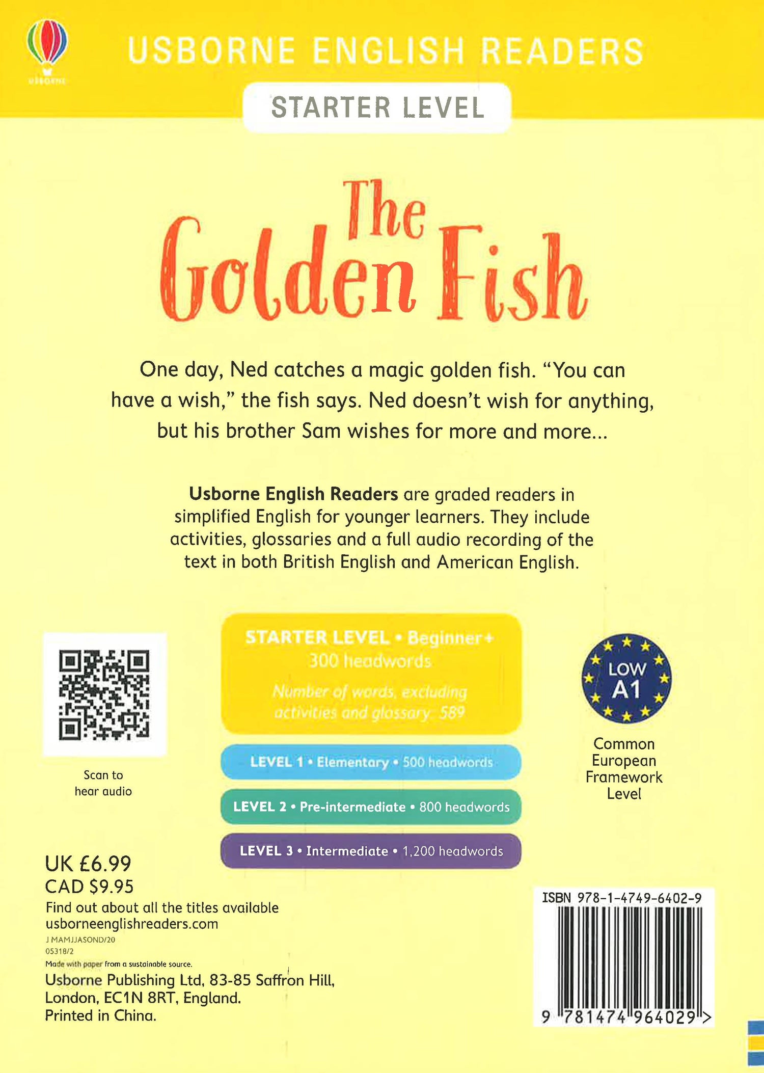 From the popular Russian folk tale. Ned lives by the sea. One day, he catches a golden fish. "Put me back in the sea and you can have a wish," says the fish. Ned doesn't wish for anything, but his brother Sam wishes for more and more... With fun activities after the story, and online audio in both British English and American English.