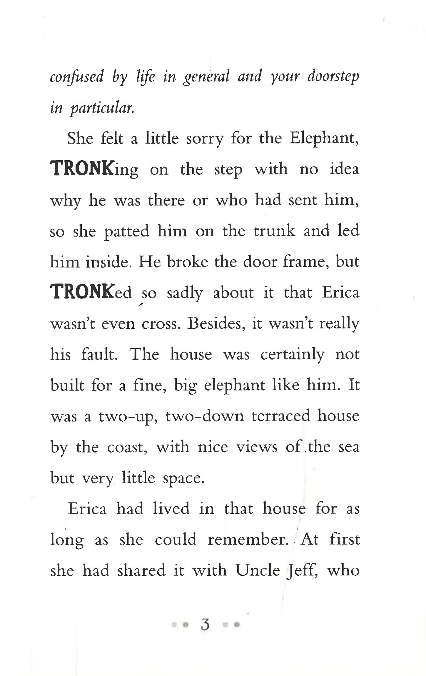 When Erica Perkins wakes up on the morning of her tenth birthday, the last thing she expects is to find a very confused elephant sitting on her doorstep. So begins an unlikely friendship.