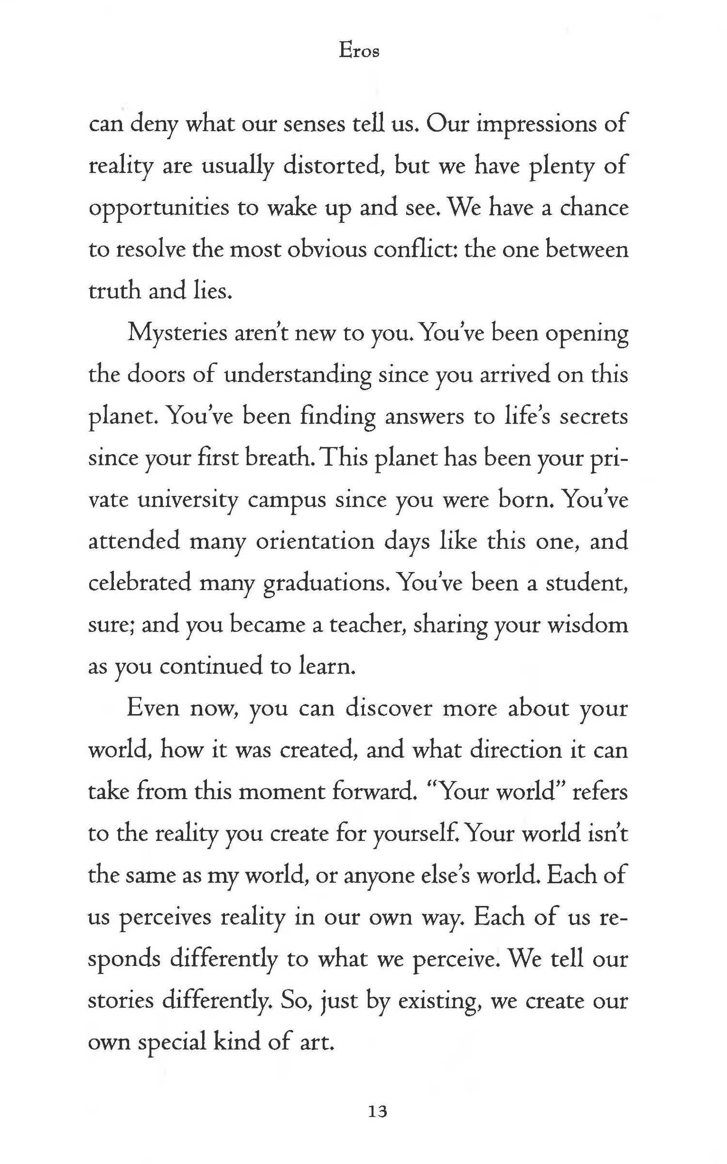 Through the transformative power of awareness and attention, we will learn to see beyond our stories about love—those that we are told, but also those that we tell ourselves—so that we can change the way we think and react. Once you set the illusions aside, you can see yourself as pure energy and also decide where to direct that energy.