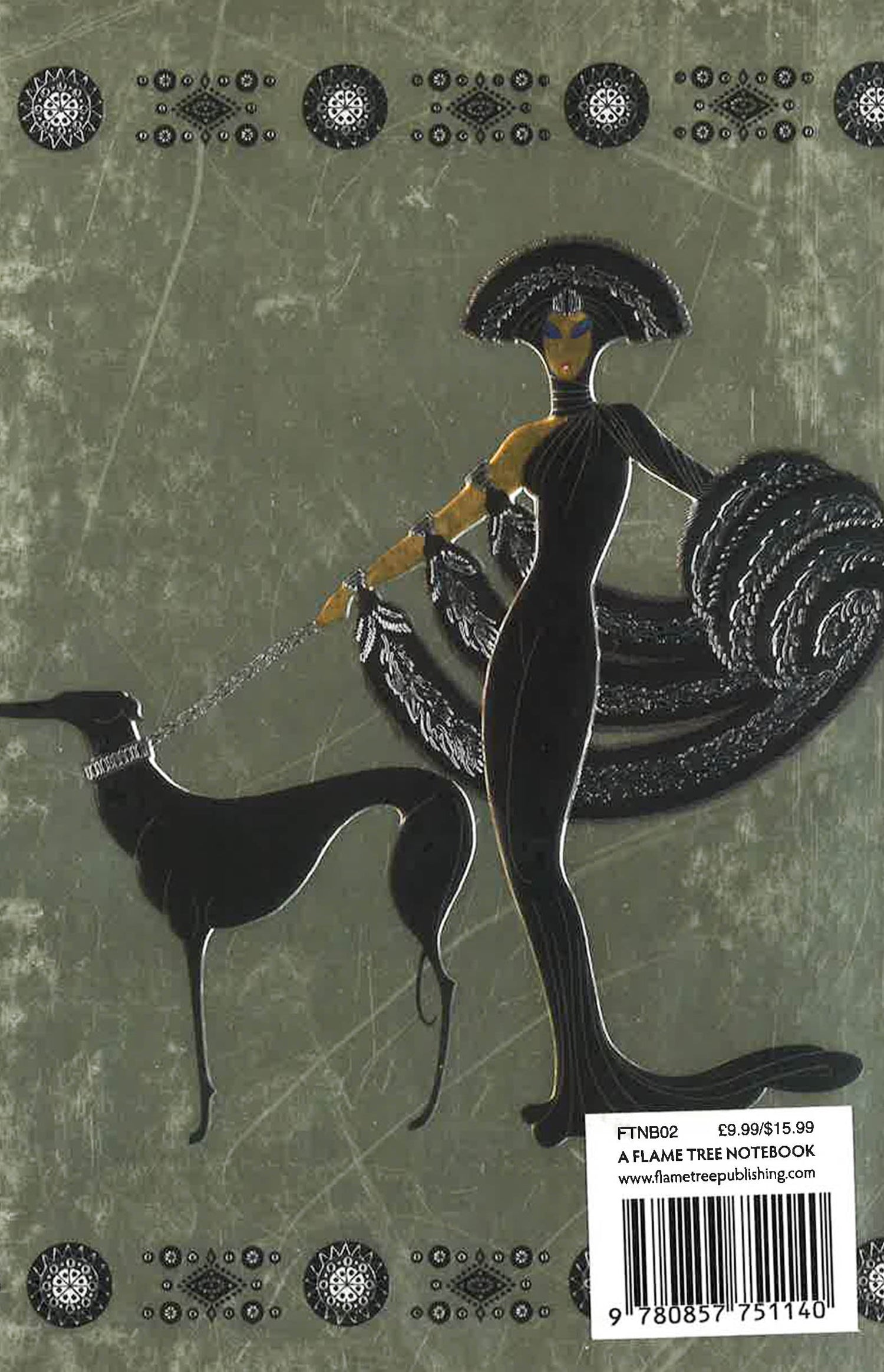 Part of a series of exciting and luxurious Flame Tree Notebooks. Combining high-quality production with magnificent fine art, the covers are printed on foil in five colours, embossed then foil stamped. And they're powerfully practical: a pocket at the back for receipts and scraps, two bookmarks and a solid magnetic side flap. These are perfect for personal use and make a dazzling gift. This example features the cosmopolitan Erte Symphony in Black design.