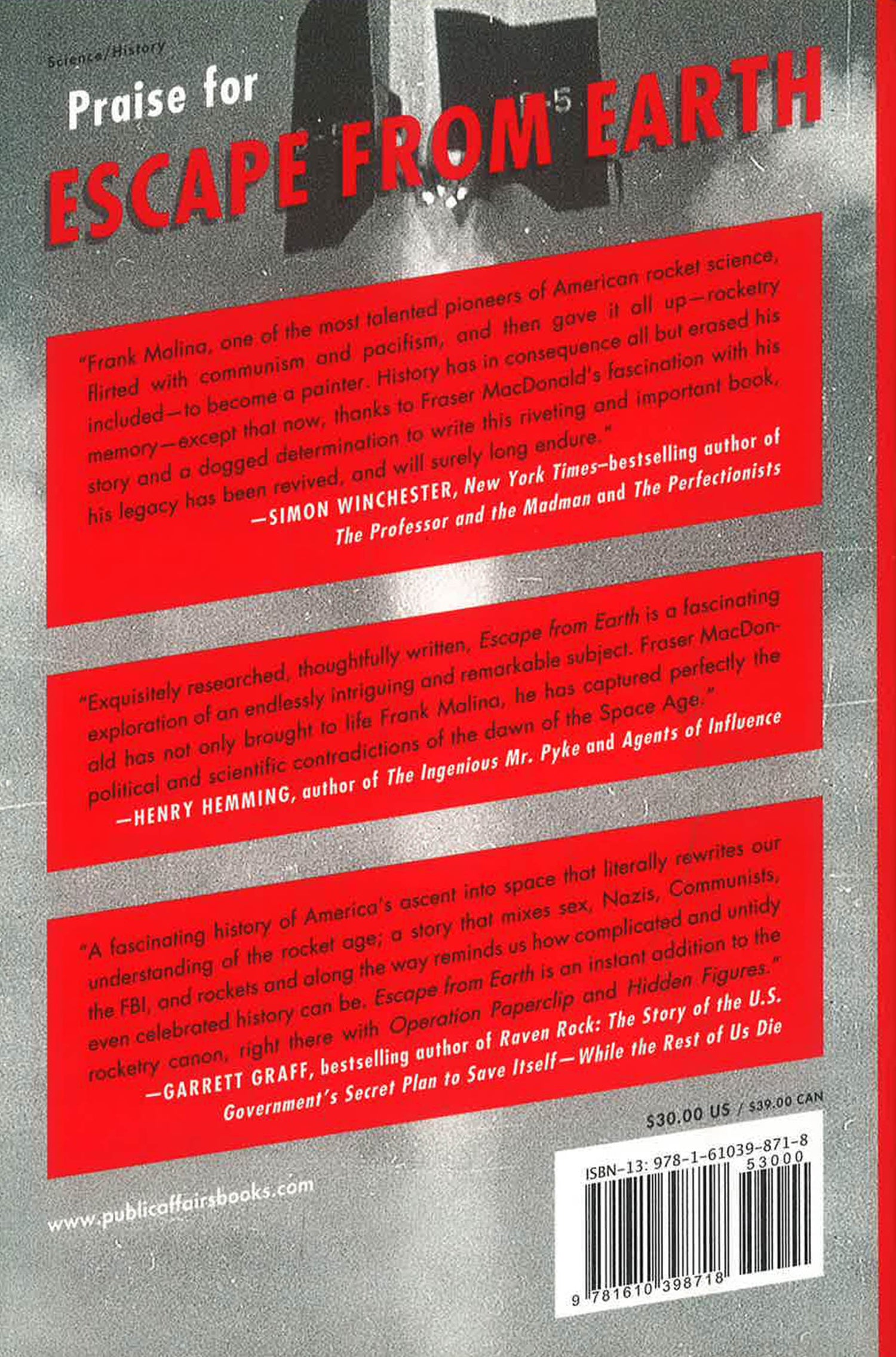Drawing on an astonishing array of untapped sources, including FBI documents and private archives, Escape From Earth tells the inspiring true story of Malina's achievements--and the political fear that's kept them hidden. At its heart, this is an Icarus tale: a real life fable about the miracle of human ingenuity and the frailty of dreams.