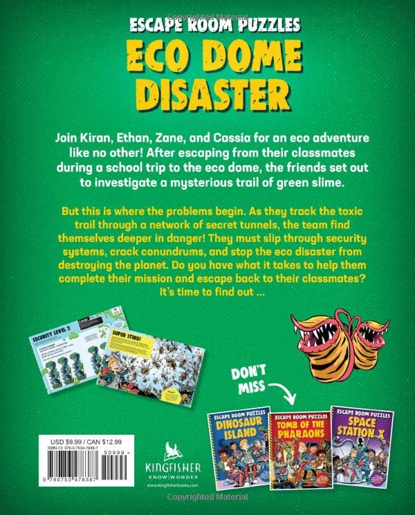This dynamic, interactive book is packed with all kinds of puzzles, including fiendish mazes, cunning logic problems, codes to crack, tricky memory challenges, and much more. On a school science trip to an eco dome filled with amazing exotic plants, the gang discover a trail of nasty toxic slime. To track down the source of the slime before it escapes into the outside world, you will need every ounce of brainpower to progress through the challenges, navigating through five locations to the final exit. Throughout the book, nuggets of non-fiction information about forests and plants are scattered on the pages.