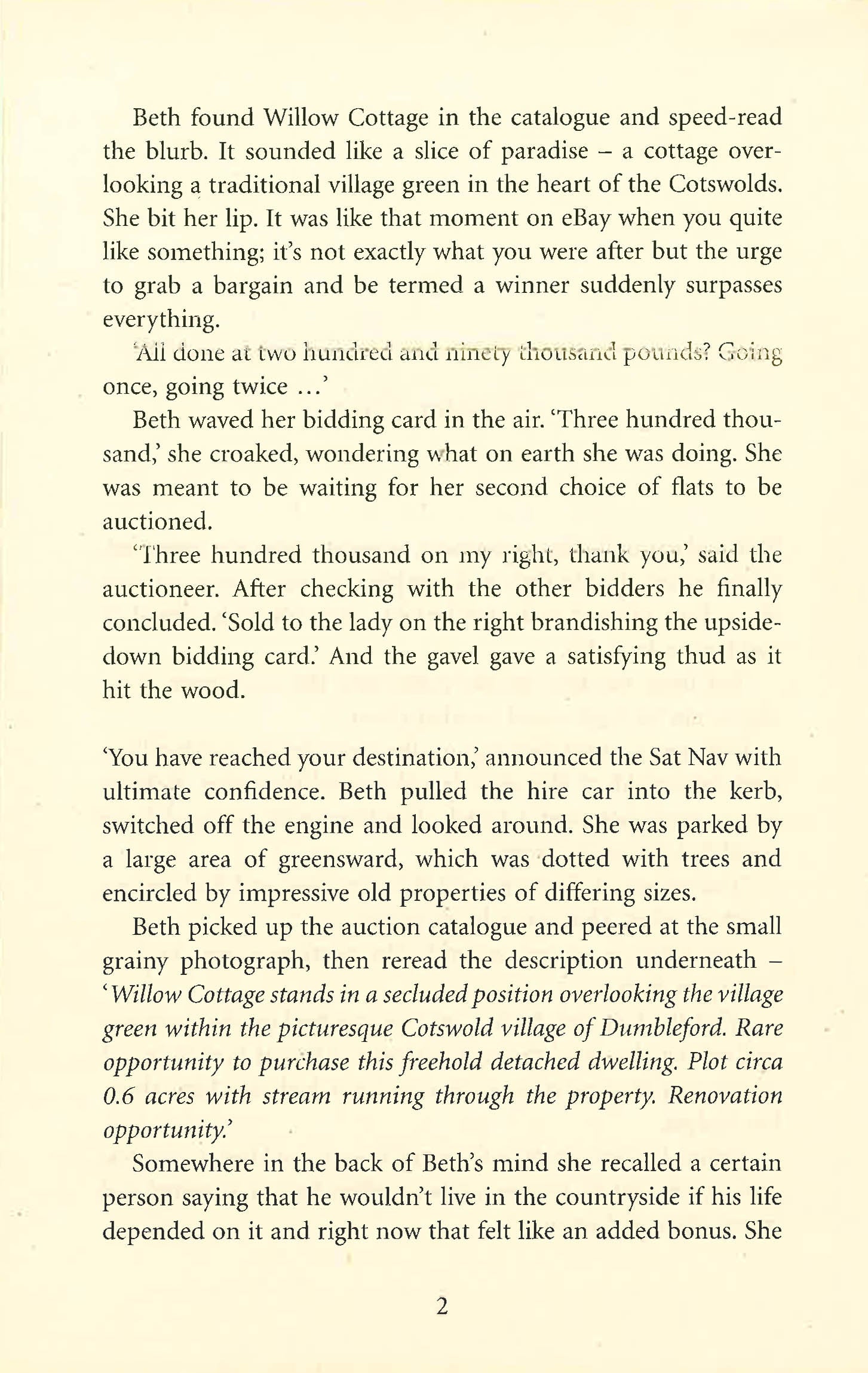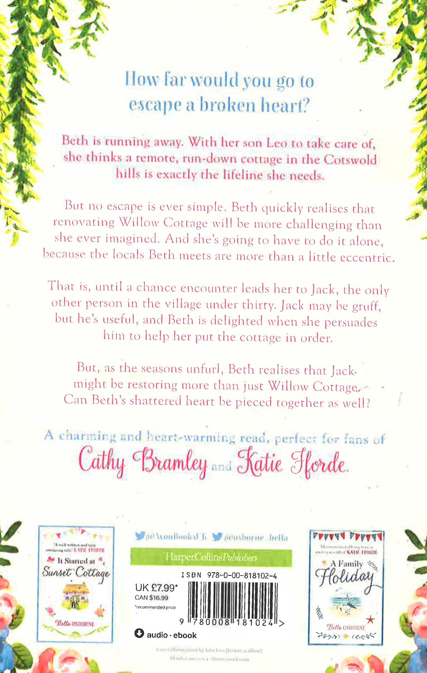 The Escape to Willow Cottage was originally published as a four-part serial. This is the complete story in one package. A cosy and heartwarming seasonal romance, perfect for fans of Trisha Ashley. Beth is running away. With her young son Leo to protect, Willow Cottage is the lifeline she so desperately needs. Overlooking the village green in a beautiful Cotswolds idyll, Beth sees a warm, caring and safe place for little Leo. When she finally uncovers the cottage from underneath the boughs of a weeping willow tree, Beth realises this is far more of a project than she bargained for and the locals are more than a little eccentric! A chance encounter with gruff Jack, who appears to be the only male in the village under thirty, leaves the two of them at odds but it's not long before Beth realises that Jack has hidden talents that could help her repair more than just Willow Cottage. Over the course of four seasons, Beth realises that broken hearts can be mended, and sometimes love can be right under your nose... Escape to Willow Cottage was originally digitally published as a four-part serial under the title Willow Cottage. This is the complete story.