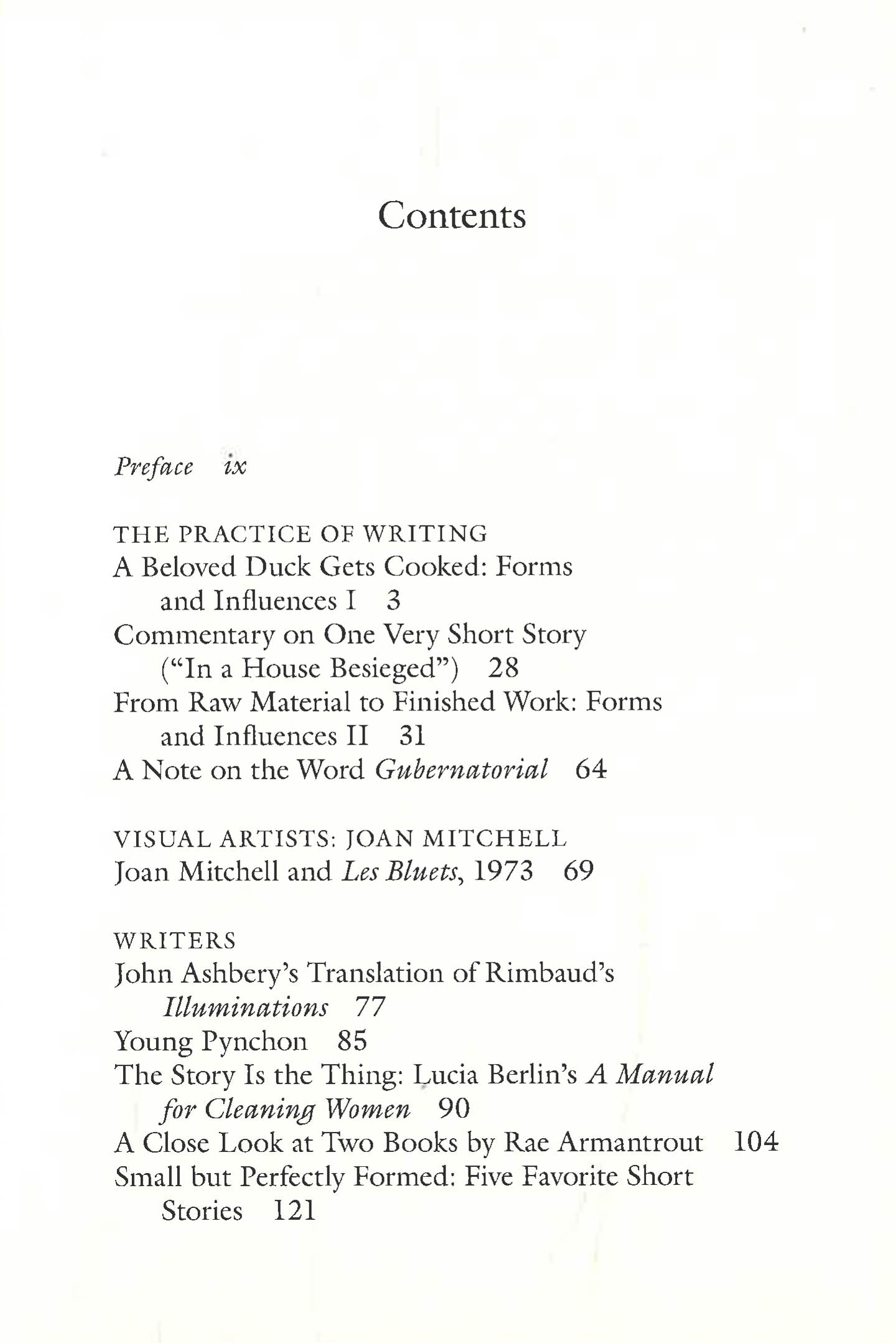 In this first of two volumes, her subjects range from her earliest influences to her favorite short stories, from John Ashbery’s translation of Rimbaud to Alan Cote’s painting, and from the Shepherd’s Psalm to early tourist photographs. On display is the development and range of one of the sharpest, most capacious minds writing today.