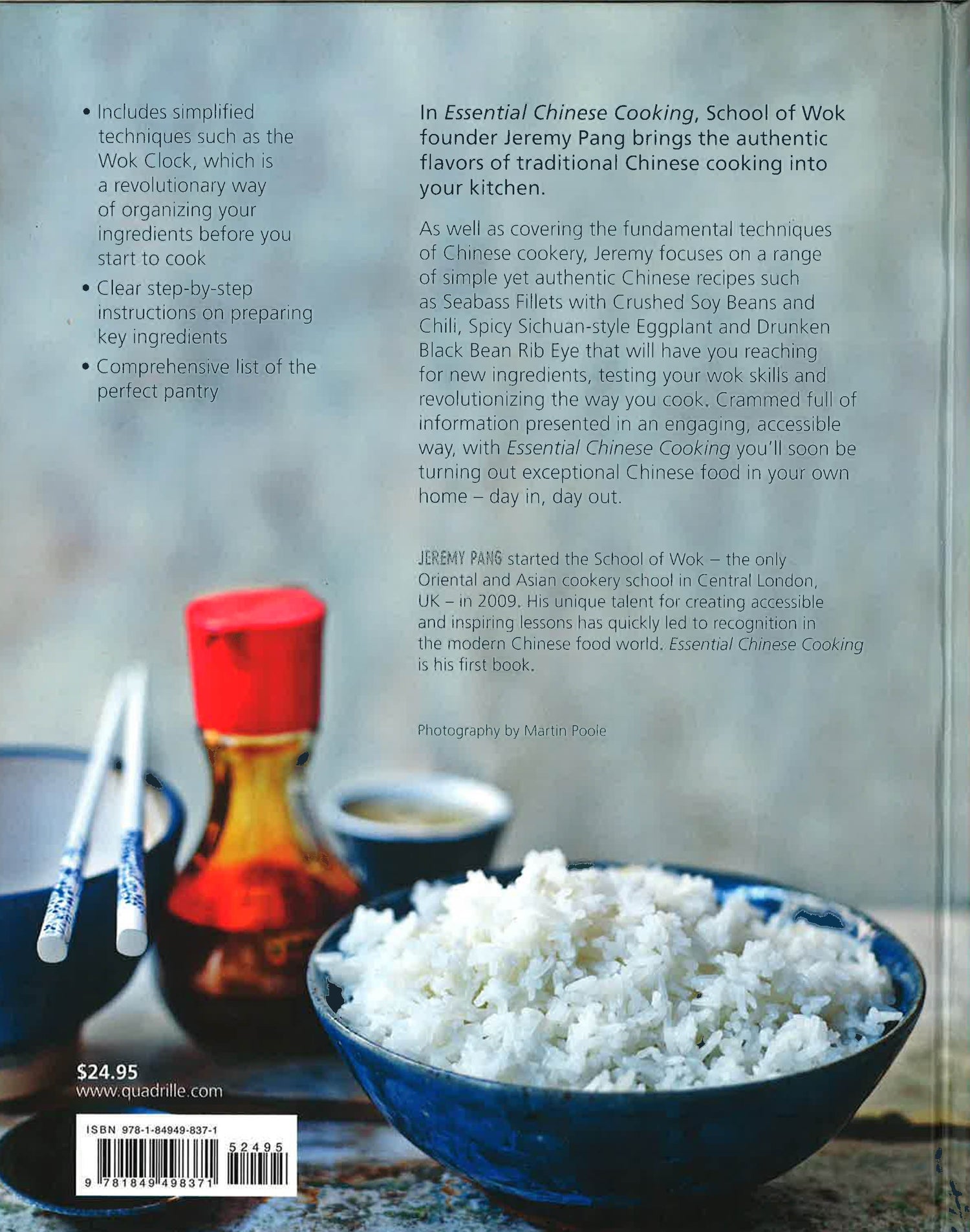 In Essential Chinese Cooking, acclaimed teacher and School of Wok founder, Jeremy Pang brings the authentic flavors of traditional Chinese cooking into your own kitchen. Throughout the six chapters Jeremy outlines the fundamental techniques of Chinese cooking, focusing on a range of delicious, simple-to cook, yet authentic Chinese recipes. It includes simplified techniques such as the Wok Clock, which is a revolutionary way of organizing your ingredients before you start to cook, that will help you turn out exceptional Chinese food in your own home--day in, day out.