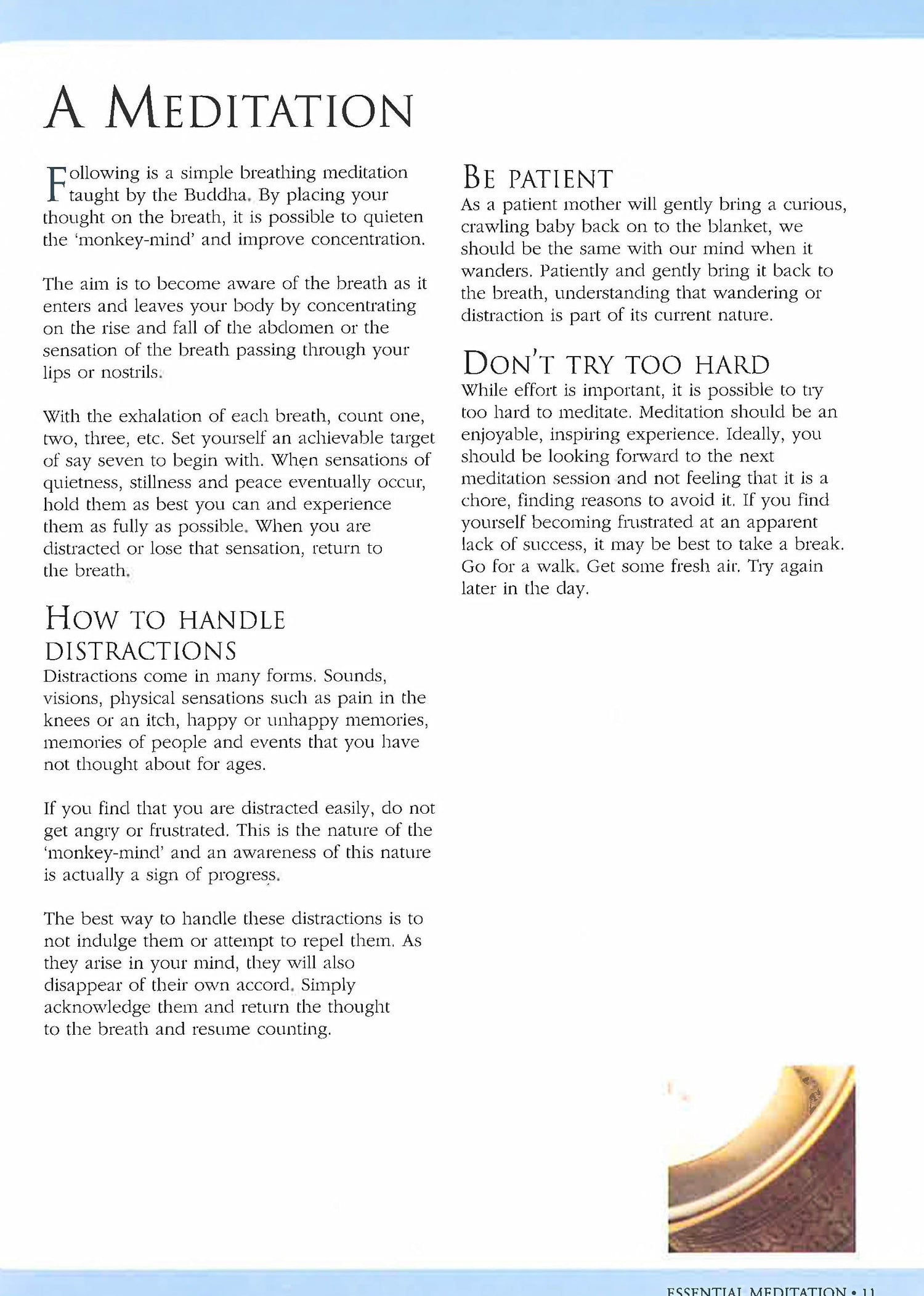 The Essential Meditation Book and DVD will get you started on the road to physical and mental fitness. Written by experts, this title features clear and easy step-by-step instructions on the techniques of meditation. Also comes with a DVD which contains a complete meditation class.