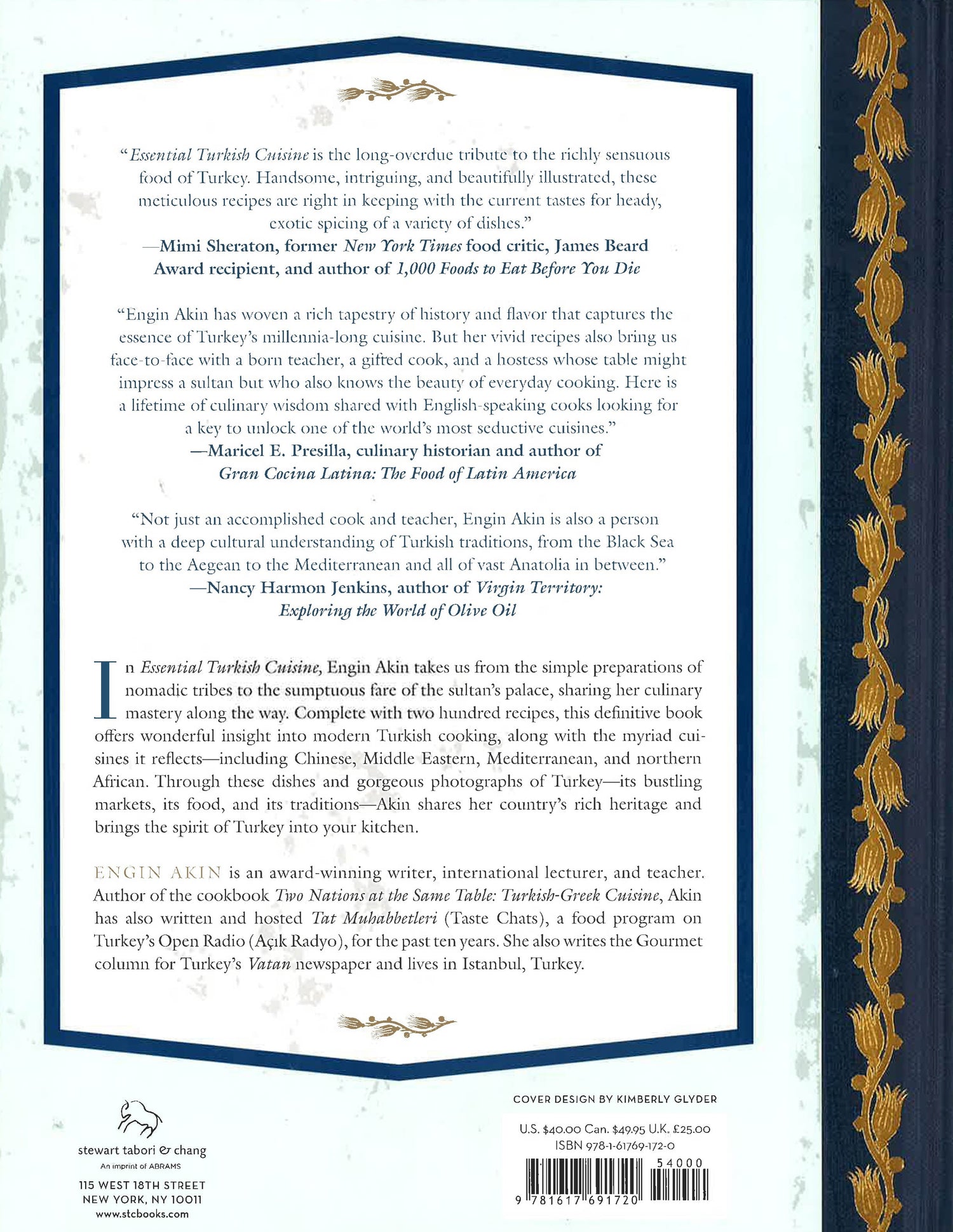 Engin Akin shares her culinary mastery and describes the evolution of Turkey's complex culture of food in The Essential Turkish Cuisine. Complete with 200 recipes found across the country, including traditional dolmas, kebabs, halva and more, this definitive book offers rare insight into the diverse influences on modern Turkish cooking. Featuring a wide range of large and small plates-from Stuffed Peppers and Eggplant to Lamb with Quince, Fresh Sour Cherry Hosaf to Crepes with Tahini and Pekmez-Engin includes expert instruction for each dish. Through these recipes and the gorgeous photographs of Turkey-its bustling markets, its food, and its traditions- Engin shares the country's rich heritage and brings the spirit of Turkey into your kitchen.