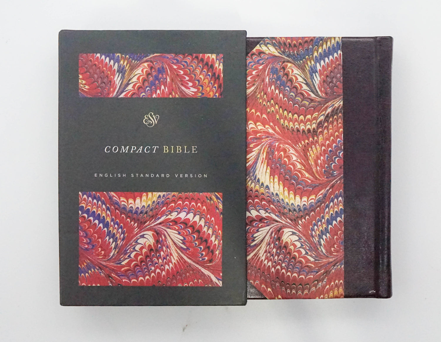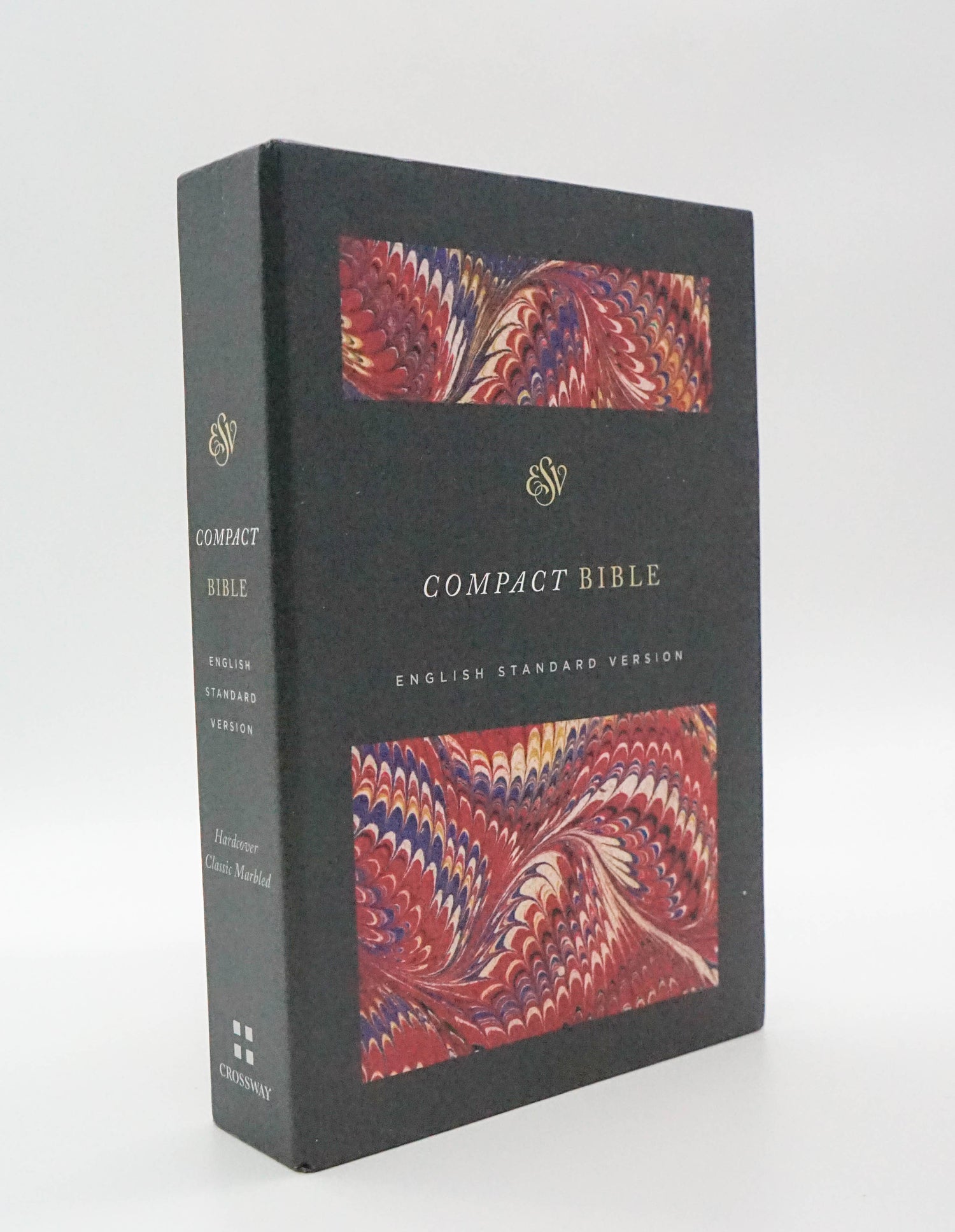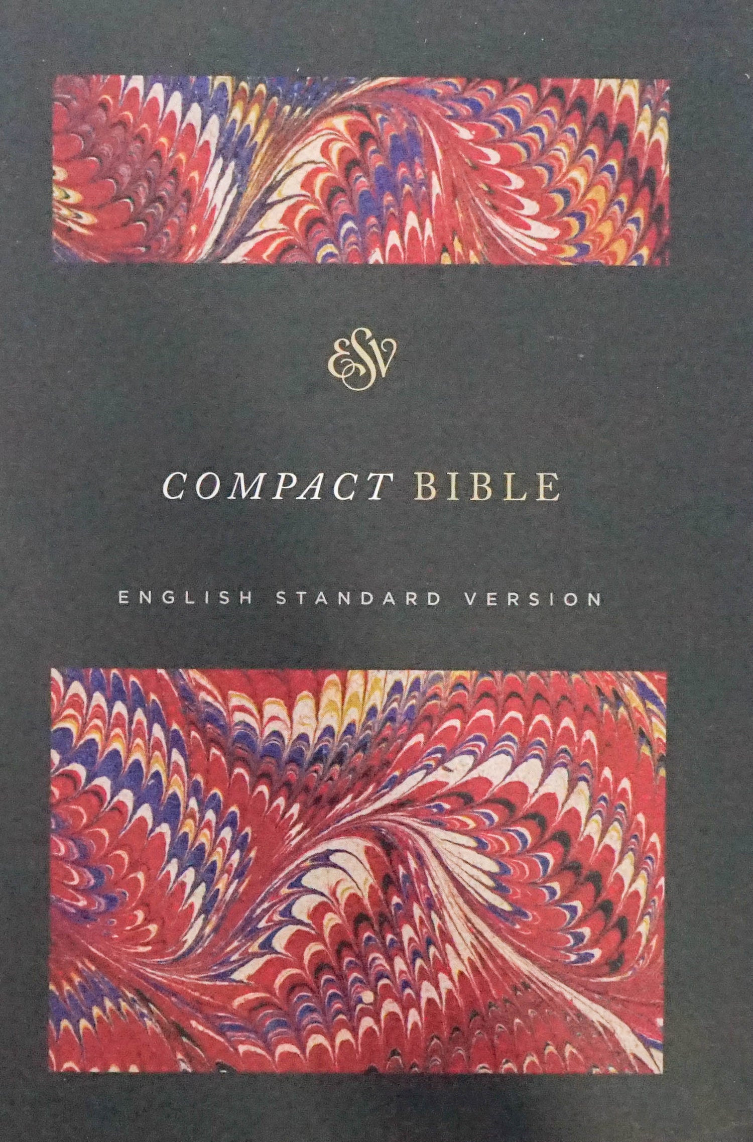 With it's handy size, readable text, and beautiful design, the ESV Compact Bible is ideal to take with you everywhere and to use every day. The hardcover binding allows the Bible to lay flat when open and increases durability.Features:• Convenient, portable size• Black letter text• Double-column, paragraph format• Smyth-sewn binding-lays flat when open• 6-point text size• 6" x 4"