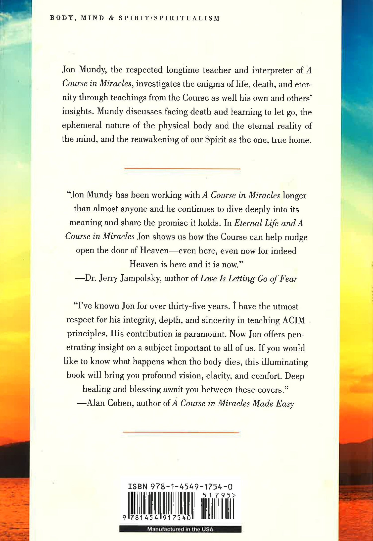 --A Course in Miracles W-49.4:5 There is no bigger mystery, nothing more compelling than the desire to know about "life after life." Jon Mundy, the respected longtime teacher and interpreter of A Course in Miracles, now investigates that enigma, using insights from the Course on mortality, death, and the afterlife. Mundy discusses facing death and learning to let go, the ephemeral nature of the physical body and the eternal reality of the mind, and the reawakening of our Spirit as the one, true home. It's a book filled with hope--and a way to alleviate our fear of death.