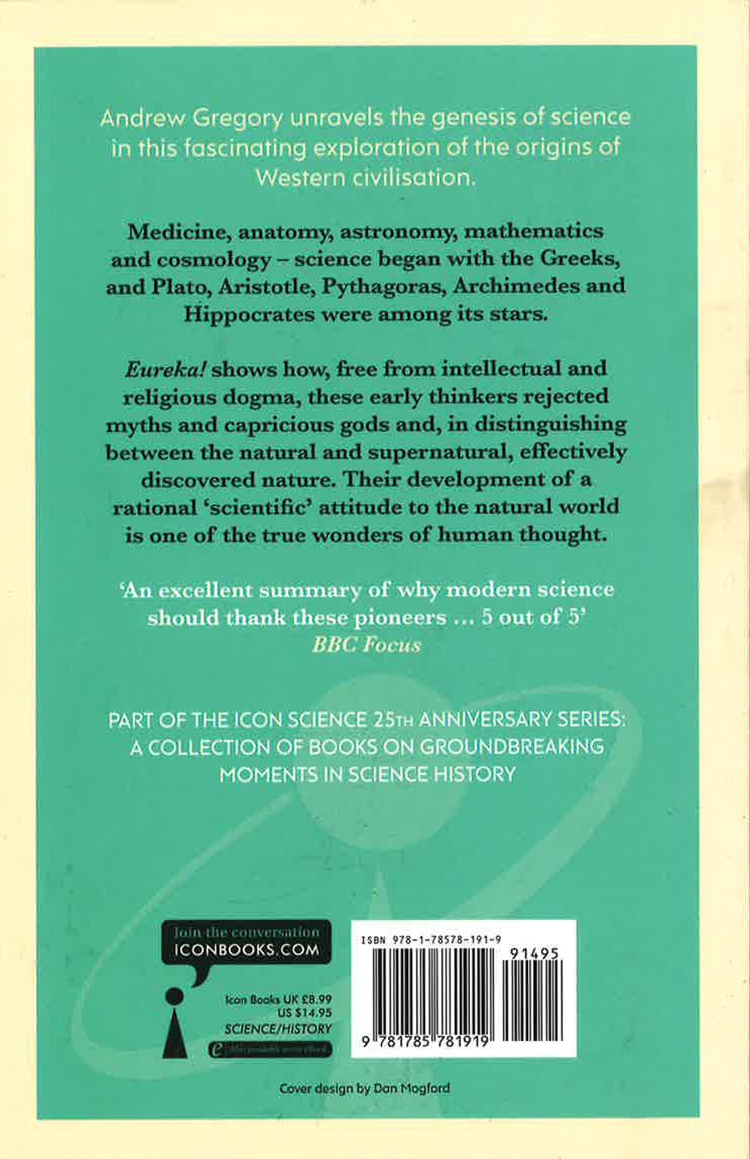 Medicine, anatomy, astronomy, mathematics and cosmology, science began with the Greeks, and Plato, Aristotle, Pythagoras, Archimedes and Hippocrates were amongst its stars. That man ever managed to develop a 'scientific' attitude to the natural world at all is one of the true wonders of human thought. Eureka! shows how, free from intellectual and religious dogma, these early thinkers rejected myths and capricious gods and, in distinguishing between the natural and supernatural, effectively discovered nature.Andrew Gregory, Professor of History and Philosophy of Science at University College London, unravels the genesis of science in this fascinating exploration of the origins of Western civilisation, and our desire for a rational, legitimating system of the world.
