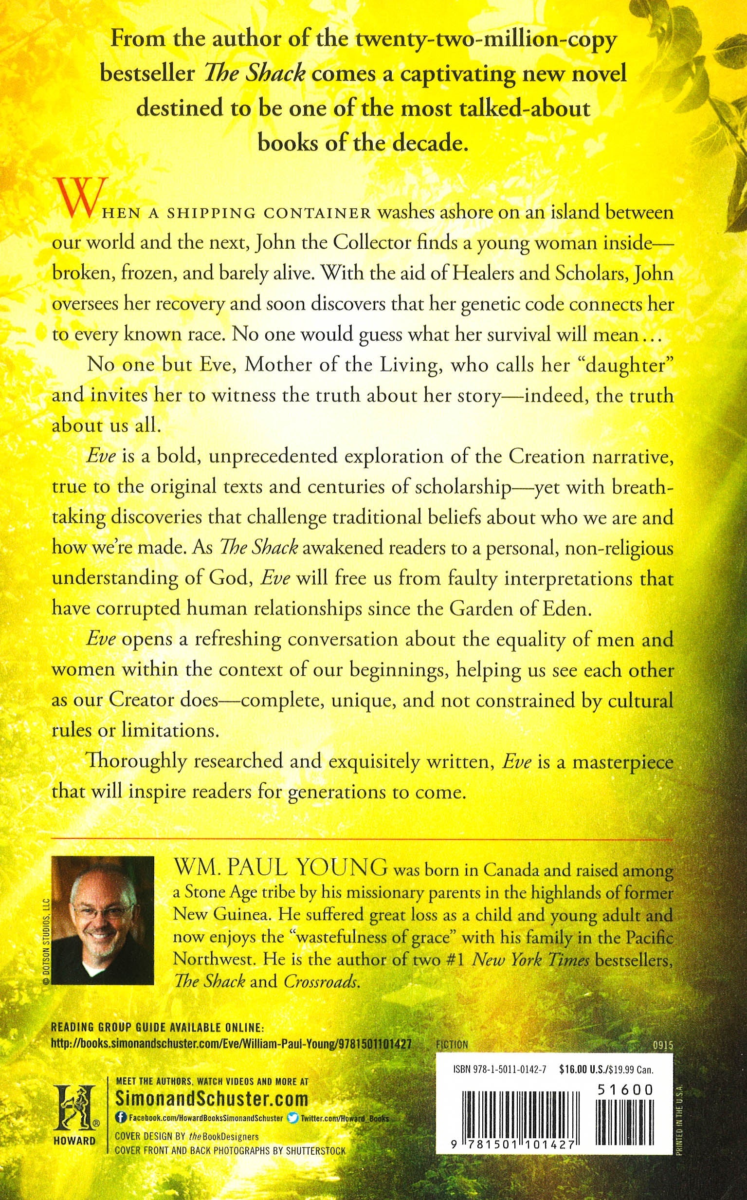 From the author of the twenty-five-million-copy bestseller The Shack comes a captivating new novel destined to be one of the most talked-about books of the decade. Eve is a bold, unprecedented exploration of the Creation narrative, true to the original texts and centuries of scholarship--yet with breathtaking discoveries that challenge traditional beliefs about who we are and how we're made. Eve opens a refreshing conversation about the equality of men and women within the context of our beginnings, helping us see each other as our Creator does--complete, unique, and not constrained by cultural rules or limitations. When a shipping container washes ashore on an island between our world and the next, John the Collector finds a young woman inside--broken, frozen, and barely alive. With the aid of Healers and Scholars, John oversees her recovery and soon discovers that her genetic code connects her to every known race. No one would guess what her survival will mean... No one but Eve, Mother of the Living, who calls her "daughter" and invites her to witness the truth about her own story--indeed, the truth about us all. As The Shack awakened readers to a personal, non-religious understanding of God, Eve will free us from faulty interpretations that have corrupted human relationships since the Garden of Eden. Thoroughly researched and exquisitely written, Eve is a masterpiece that will inspire readers for generations to come.