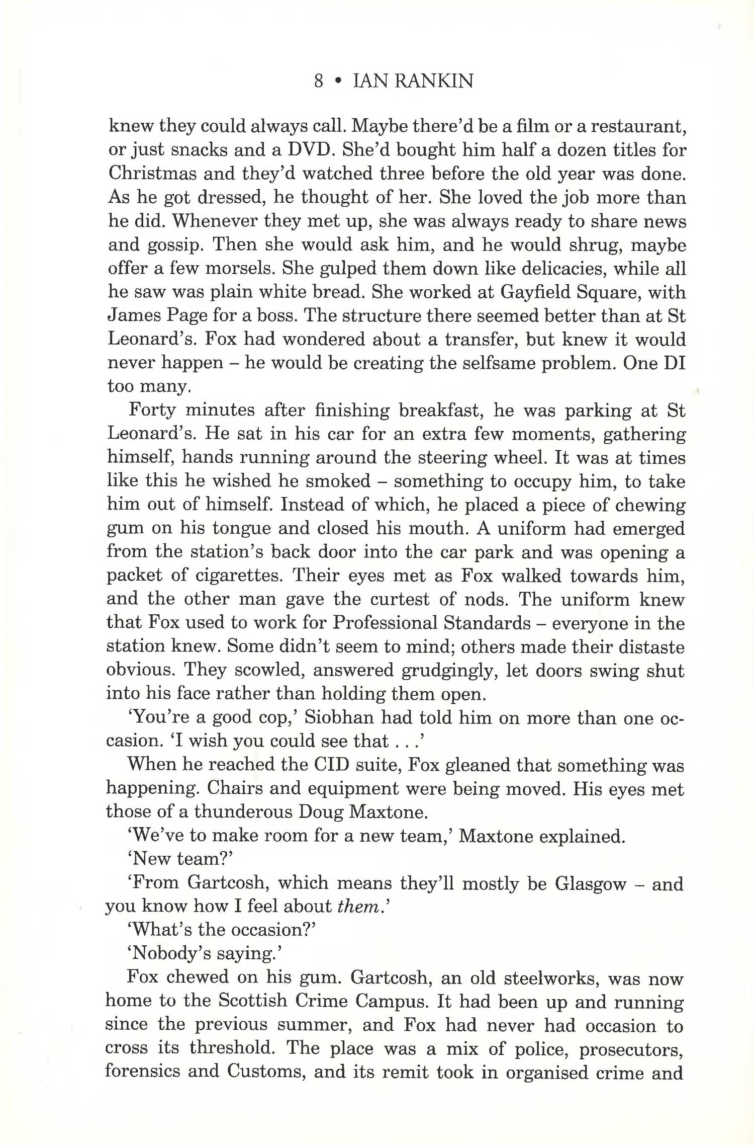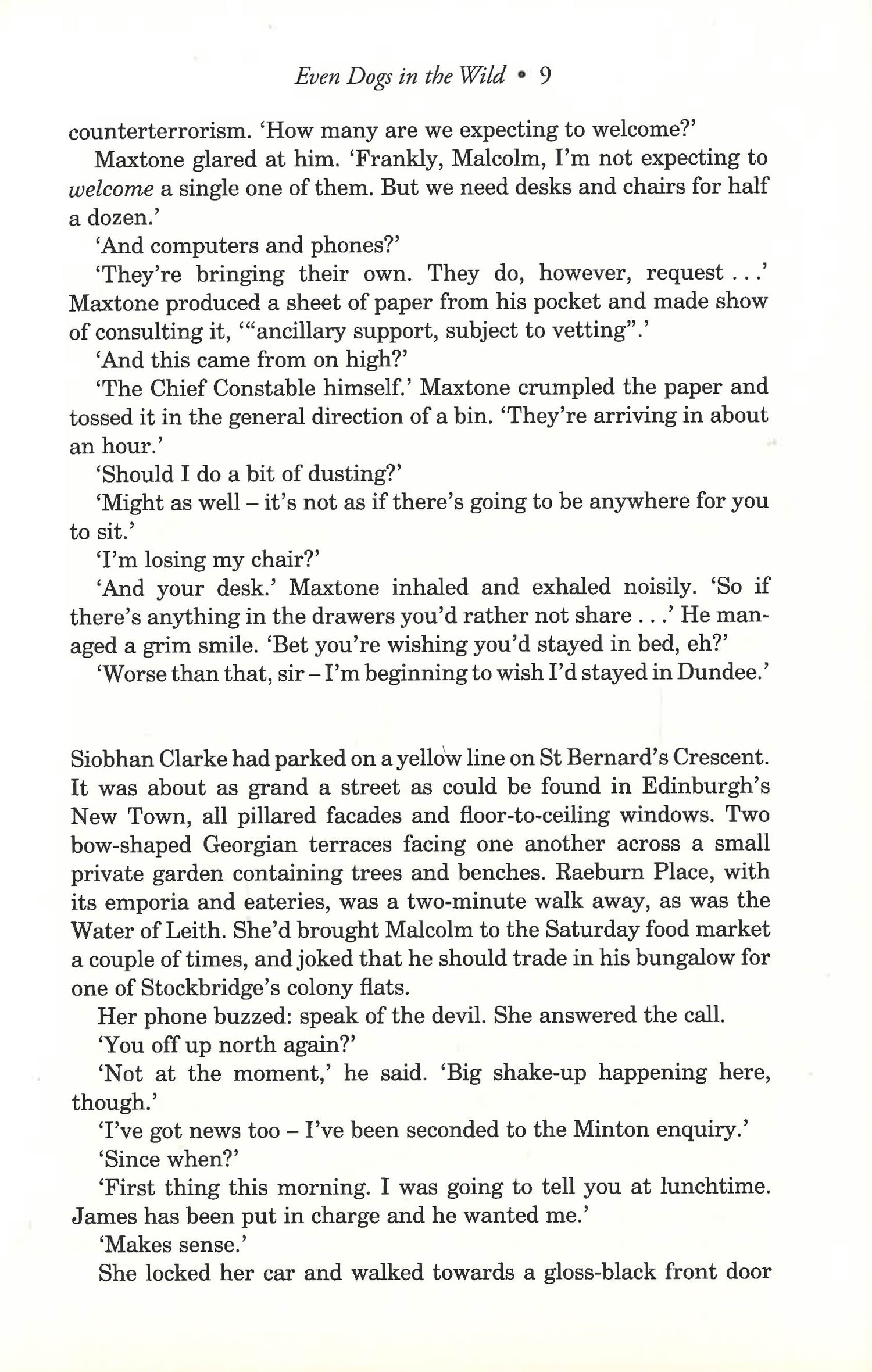 A Boston Globe Best Mystery of the Year Rebus comes out of retirement...to save his nemesis. Detective Inspector Siobhan Clarke is feeling the heat. She's investigating the death of a senior government prosecutor, David Minton, who has friends in high places. When one of their own is killed, the powers that be want answers fast. But Clarke is puzzled: if Minton died in a robbery as everyone thinks, why is nothing missing from his home? The answer may lie not in what was taken, but in what was left behind at the scene--an ominous note. Malcolm Fox is feeling useless. Shunned by his colleagues because of his past in the Complaints bureau, he's been reassigned to a grunt detail, helping a surveillance team--one that trusts him even less than his own boss does--track a notorious Glasgow crime family. Helping Clarke with the Minton case is the only thing that makes Fox feel like a real cop. Newly minted civilian John Rebus is feeling restless. Being a cop is in his blood and he's failing miserably at retirement. So when Clarke and Fox ask for his help, Rebus doesn't need long to consider his options. But before he can get his bearings, a call comes from Rebus's old nemesis--"Big Ger" Cafferty. Someone just fired a bullet through his front window--and sent him a note identical to Minton's. The normally unflappable old gangster is on edge, but for the life of him Cafferty can't figure out who he's wronged. And the only man he trusts with his life is Rebus. As the cases collide, it's up to Clarke, Fox, and Rebus to connect the dots and save their unlikely ally Cafferty, whose past harbors a shocking secret that implicates Minton's friends in an unspeakable crime. Even Dogs in the Wild reunites crime fiction legend Ian Rankin's greatest characters in an explosive story exploring the darkest corners of our desires.