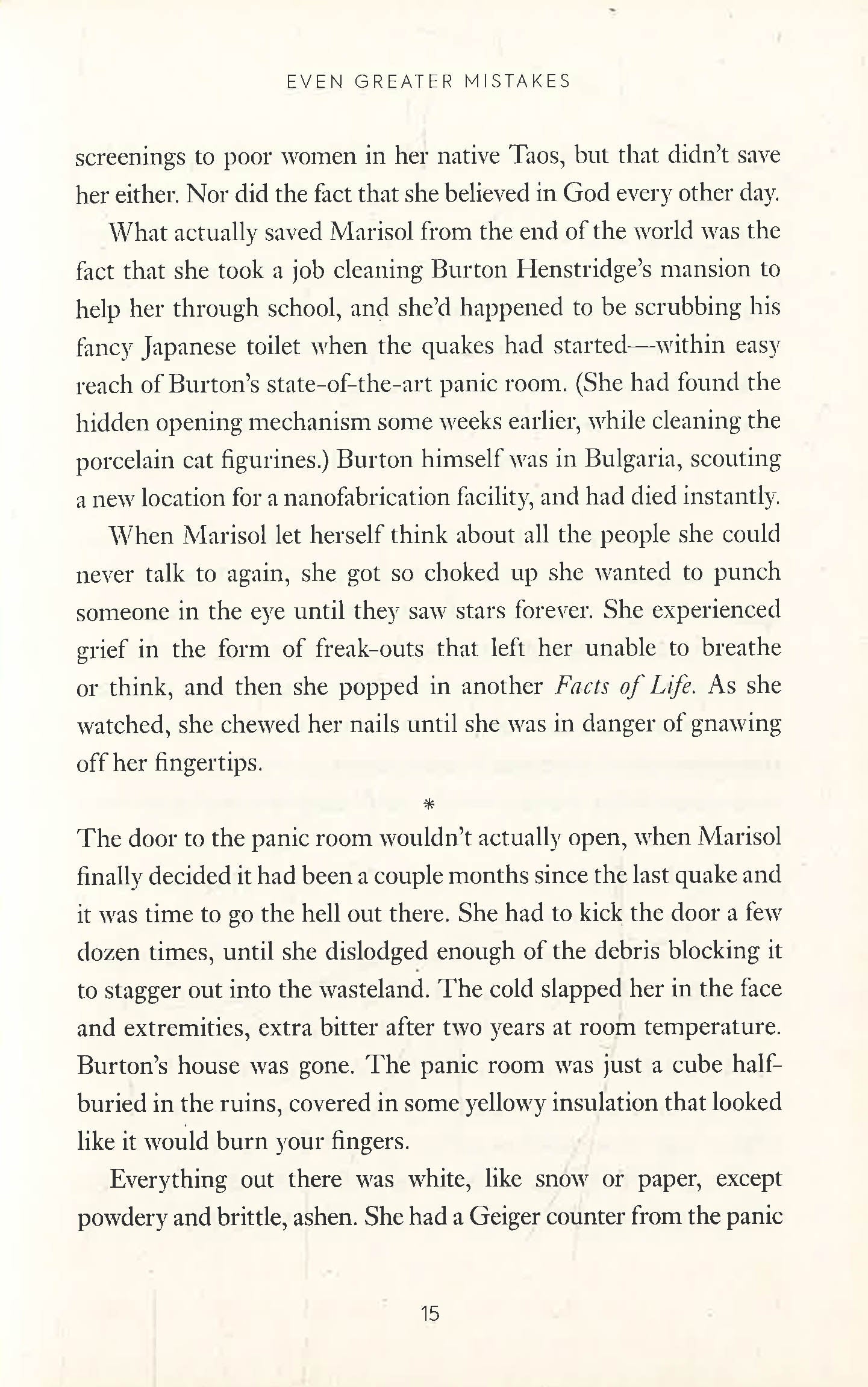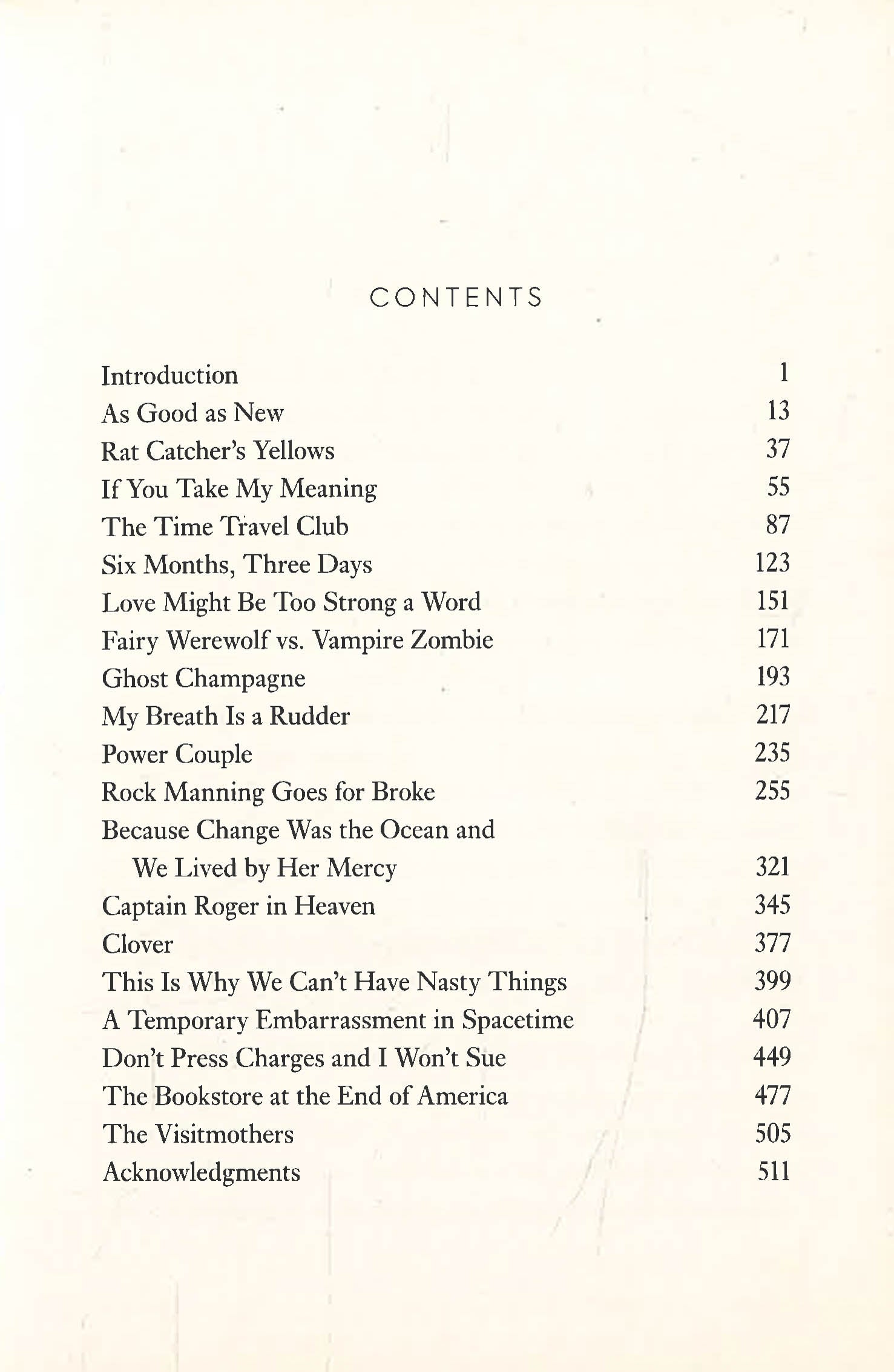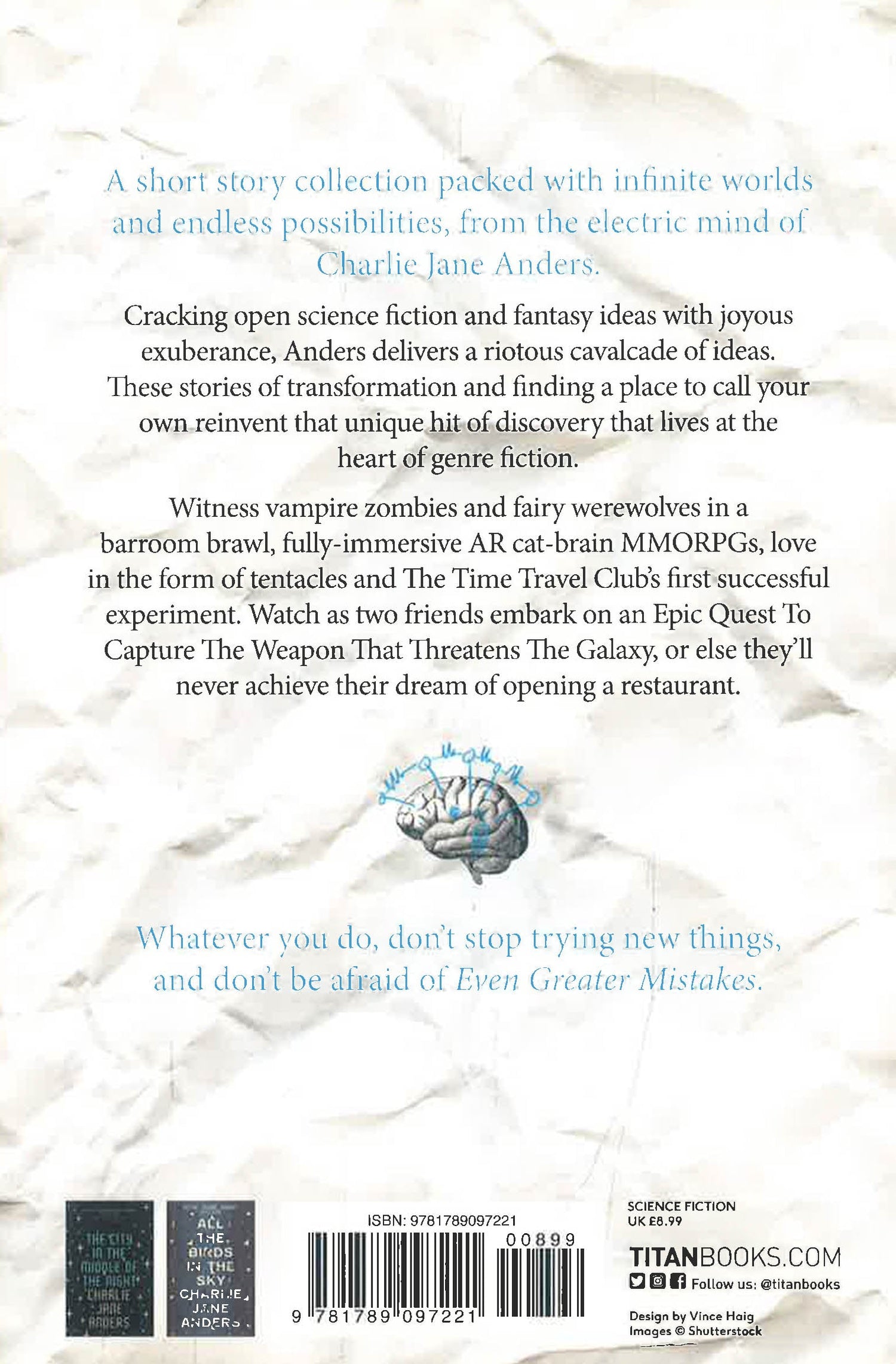 The woman who can see all possible futures is dating the man who can see the only foreordained future. A wildly popular slapstick filmmaker is drawn, against his better judgment, into working with a fascist militia against a background of social collapse. Two friends must embark on an Epic Quest to Capture the Weapon That Threatens the Galaxy, or else they’ll never achieve their dream of opening a restaurant. A trans woman is captured by an agency that brutally forces detransition by means of brain transplants - only to discover that the person overseeing her case is her childhood friend. And in the liminal space between the warring fragments of what was once the United States, a mysterious bookstore is the place where all the incompatible realities can touch.