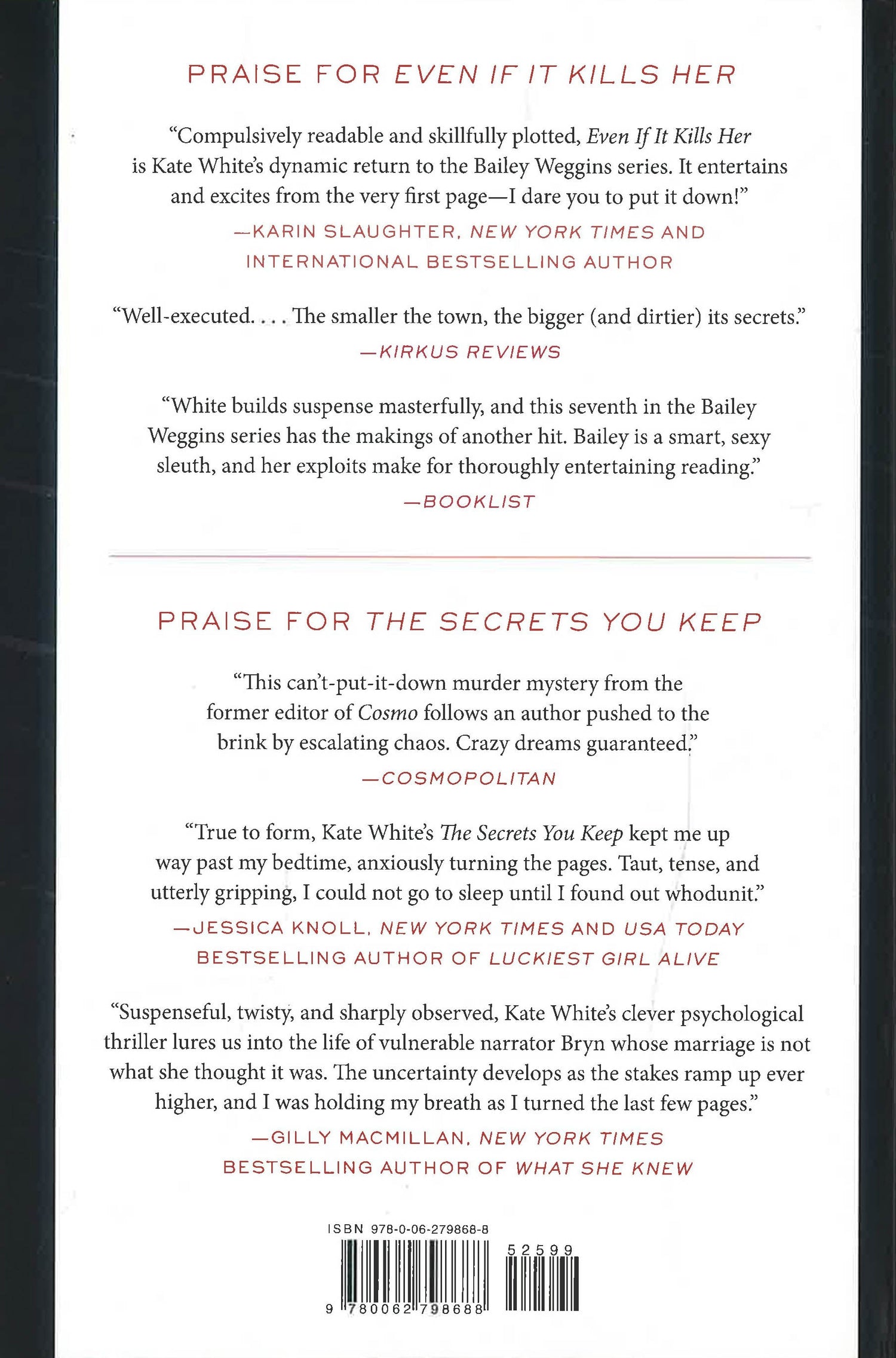 Jillian Lowe seemed to have it all. Both beautiful and accomplished, she lit up any room that she walked into. All of that dramatically changed when her parents and two siblings were brutally murdered at her childhood home her second year in college. The crime shattered what was once a picture-perfect family and nearly derailed Jillian’s hopes for her future. Now, sixteen years later, Jillian is shocked to learn that the man imprisoned for murdering her family didn't do it. With the real killer walking free and the cops dragging their heels, Jillian once again feels her life unraveling, and desperately seeks help from an old friend from college, true crime writer Bailey Weggins. As the two women return to Jillian’s childhood town to investigate, it doesn’t take long for their sleuthing to cause shock waves. Someone starts watching their every move. As they uncover deeply-guarded secrets, so shocking that they make Jillian rethink her entire relationship to her family, Bailey and Jillian find themselves in fear of their own lives. The truth has consequences and they must decide if they’re ready to face them.