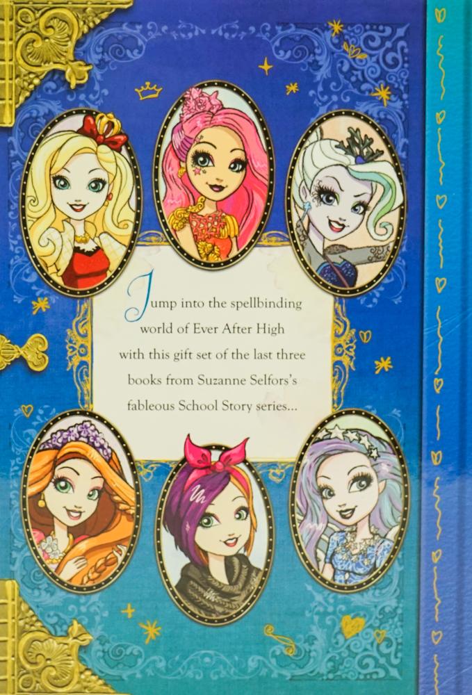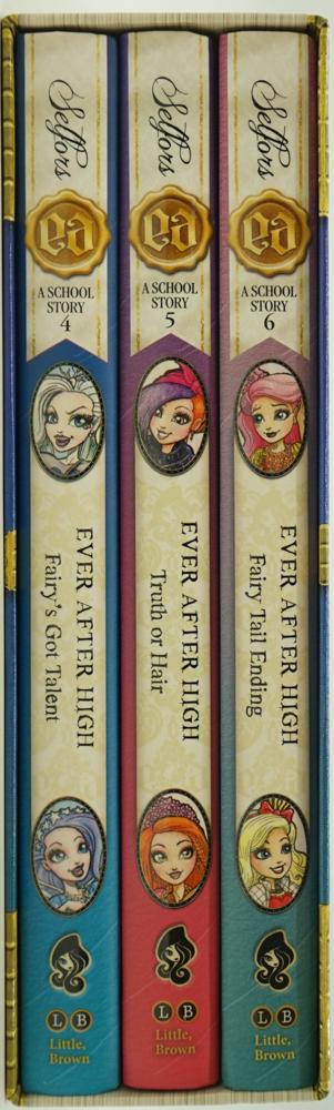 For Ever After High fans, the next three books (#4-6) in A School Story series by Suzanne Selfors in one hexcellent box! Boxed set includes: Fairy's Got Talent, Truth or Hair, and Fairy Tail Ending. (c)2016 Mattel. All Rights Reserved.