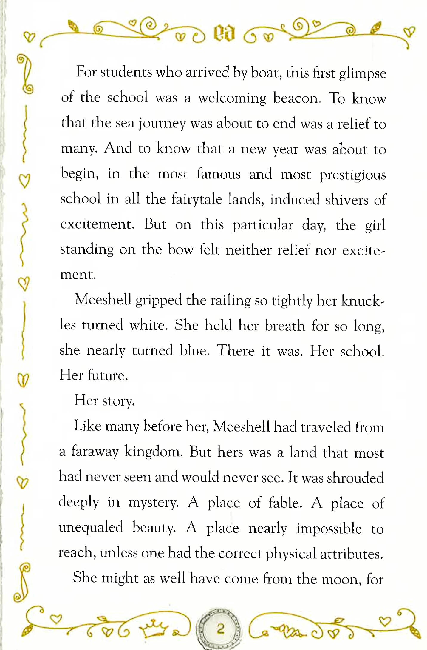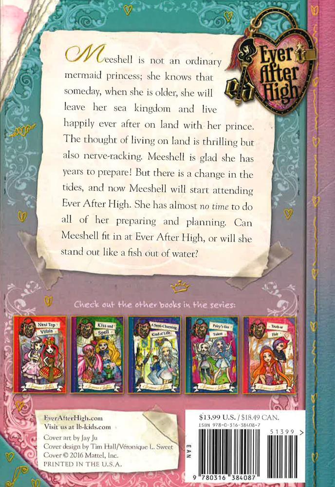 The sixth fableous book in Suzanne Selfors' Ever After High: A School Story series. Meeshell is not an ordinary mermaid princess; she knows that someday, when she is older, she will leave her sea kingdom and live happily ever after on land with her prince. The thought of living on land is thrilling but also nerve-racking. Meeshell is glad she has years to prepare! But there is a change in the tides, and now Meeshell will start attending Ever After High. She has almost no time to do all of her preparing and planning. Can Meeshell fit in at Ever After High, or will she stand out like a fish out of water? (c) 2016 Mattel. All Rights Reserved.