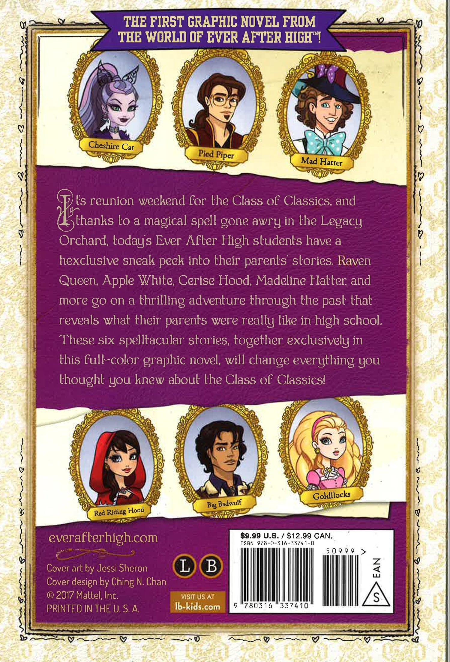 It's reunion weekend for the Class of Classics, and thanks to a magical spell gone awry in the Legacy Orchard, today's Ever After High students have a hexclusive sneak peek into their parents' stories. Raven Queen, Apple White, Cerise Hood, Madeline Hatter, and more go on a thrilling adventure through the past that reveals what their parents were really like in high school. These six spelltacular stories, together exclusively in this full-color graphic novel, will change everything you thought you knew about the Class of Classics! (c)2017 Mattel. All Rights Reserved.