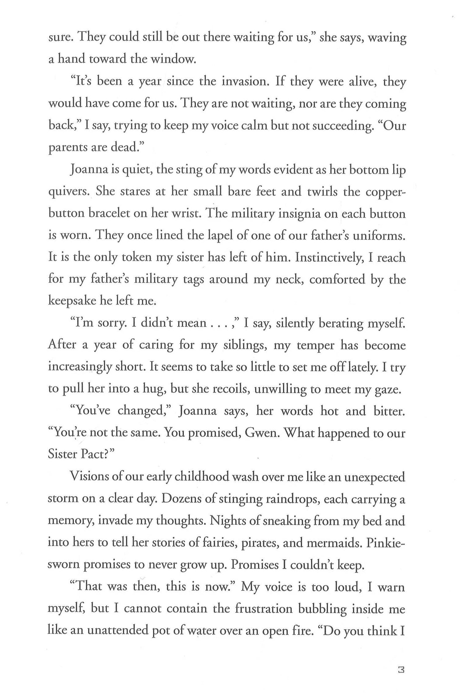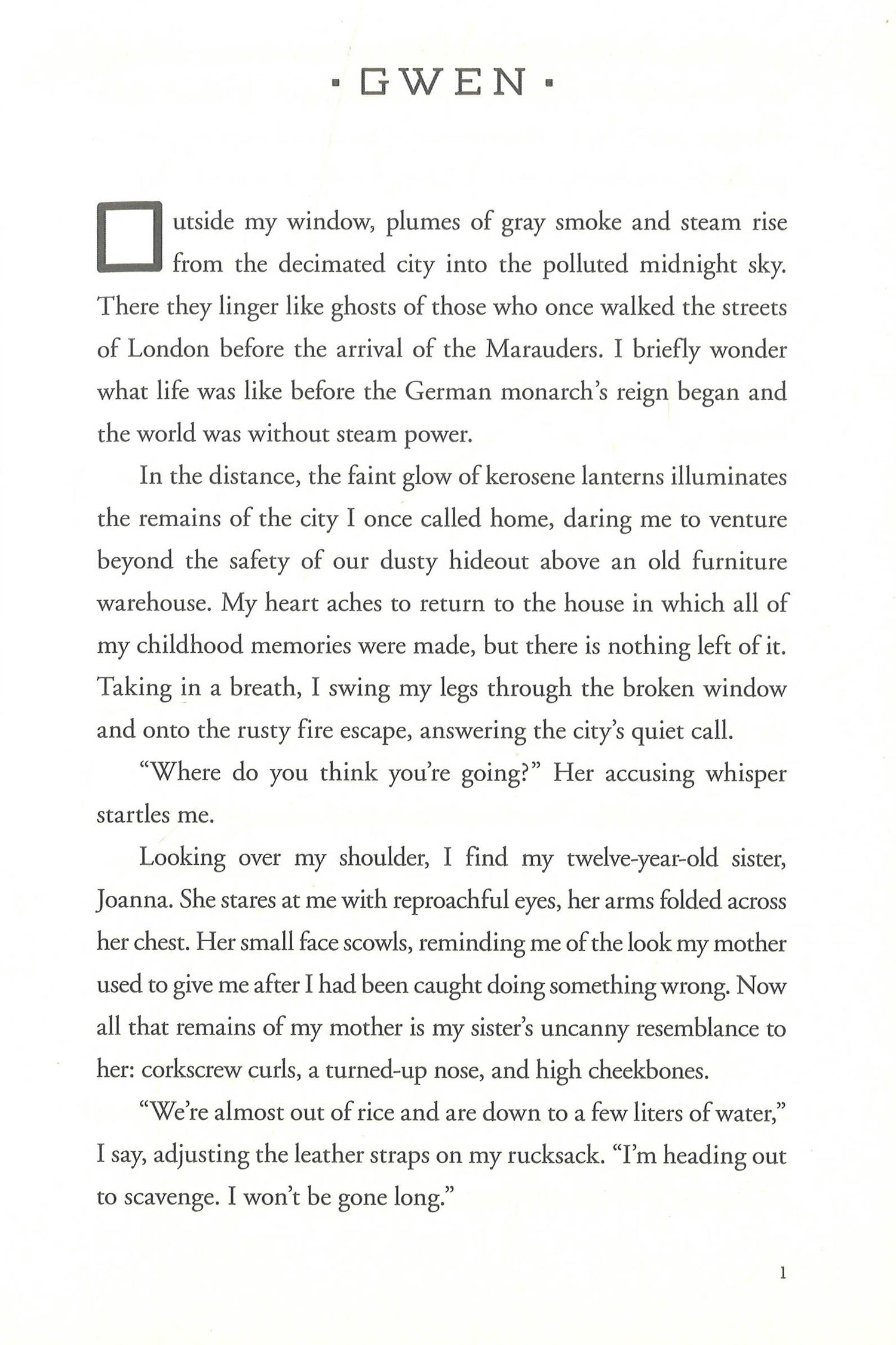 London has been destroyed in a blitz of bombs and disease. The only ones who have survived are children, among them Gwen Darling and her siblings, Joanna and Mikey. They spend their nights scavenging and their days avoiding the ruthless Marauders -- the German army led by Captain Hanz Otto Oswald Kretschmer.Unsure if the virus has spread past England's borders but desperate to leave, Captain Hook hunts for a cure, which he thinks can be found in one of the survivors. He and his Marauders stalk the streets snatching children for experimentation. None ever return. Until the day they grab Joanna. As Gwen sets out to save her, she meets a daredevil boy named Pete. Pete offers the assistance of his gang of Lost Boys and the fierce sharpshooter Bella, who have all been living in a city hidden underground. But in a place where help has a steep price and every promise is bound by blood, it will cost Gwen. And are she, Pete, the Lost Boys, and Bella enough to outsmart Captain Hook?