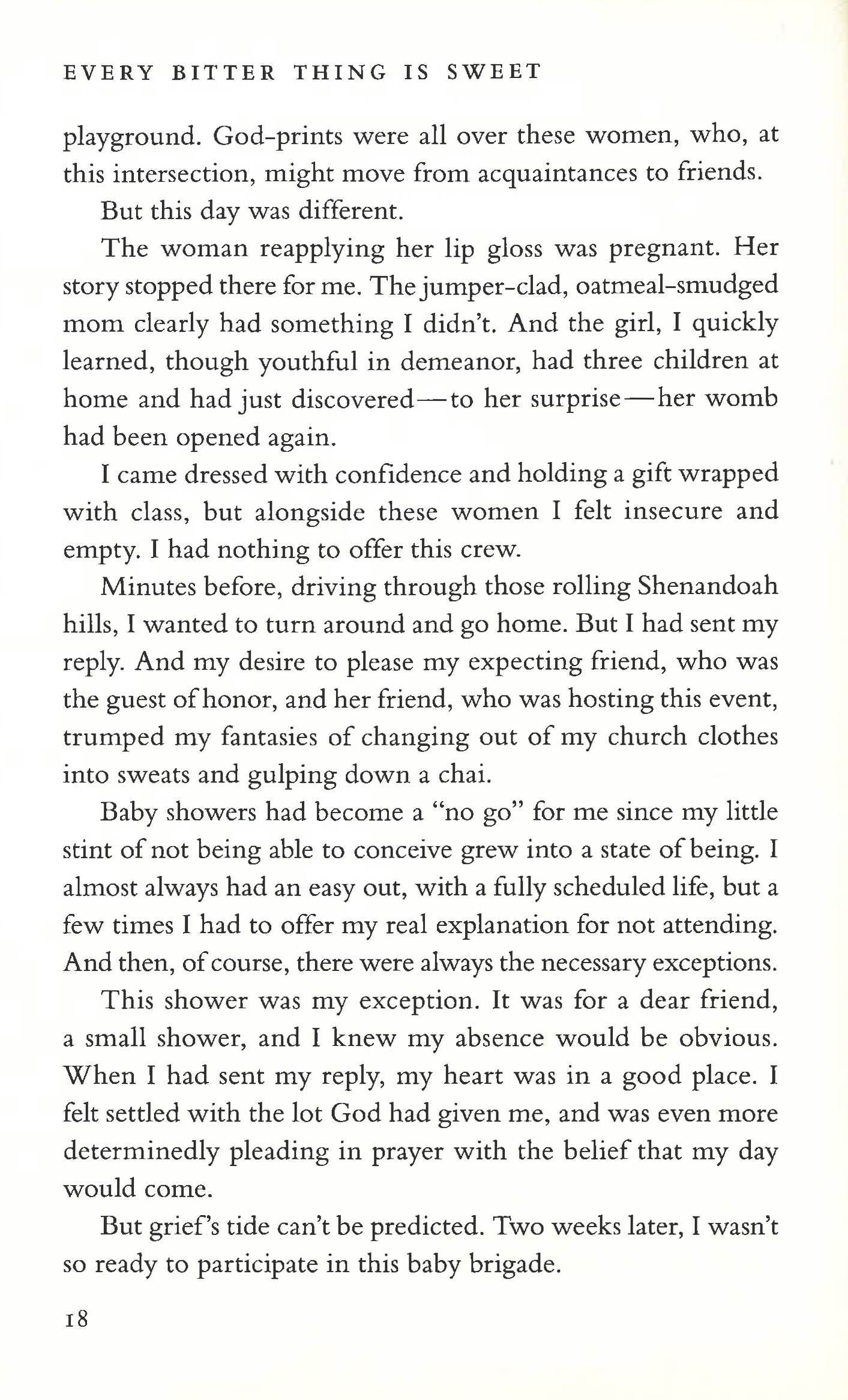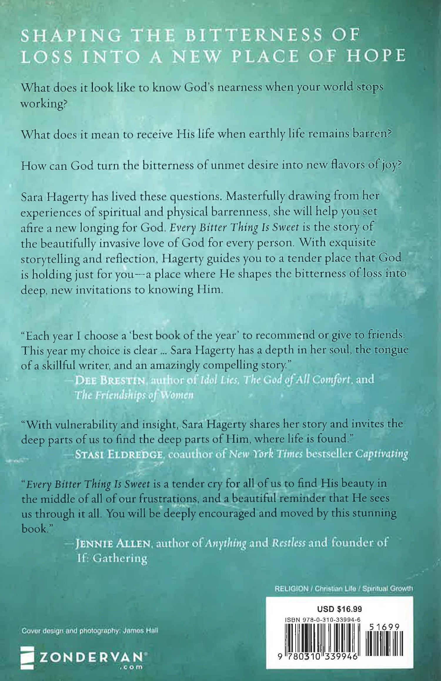 In the age of fingertip access to answers and a limitless supply of ambitions, where do we find the God who was birthed in dirt and straw? Sara Hagerty found him when life stopped working for her. She found him when she was a young adult mired in spiritual busyness and when she was a new bride with doubts about whether her fledgling marriage would survive. She found him alone in the night as she cradled her longing for babies who did not come. She found him as she kissed the faces of children on another continent who had lived years without a mommy's touch.In Every Bitter Thing Is Sweet, Hagerty masterfully draws from the narrative of her life to craft a mosaic of a God who leans into broken stories. Here readers see a God who is present in every changing circumstance. Most significantly, they see a God who is present in every unchanging circumstance as well.Whatever lost expectations readers are facing-in family, career, singleness, or marriage-Every Bitter Thing Is Sweet will bring them closer to a God who longs for them to know him more. What does it look like to know God's nearness when life breaks? What does it mean to receive his life when earthly life remains barren? How can God turn the bitterness of unmet desire into new flavors of joy?With exquisite storytelling and reflection, Hagerty brings readers back to hope, back to healing, back to a place that God is holding for them alone-a place where the unseen is more real than what the eye can perceive. A place where every bitter thing is sweet.