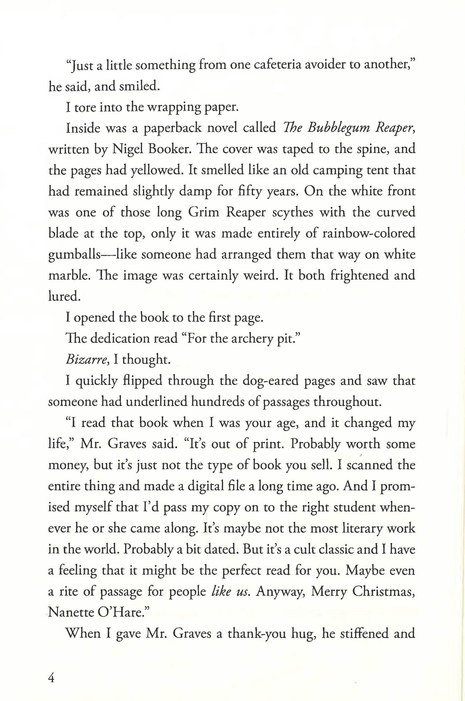 Nanette O'Hare has played the quintessential privileged star athlete and straight-A student for as long as she can remember. But when a beloved teacher gives her his worn copy of The Bubblegum Reaper--a mysterious, out-of-print cult classic--the rebel within Nanette awakens.