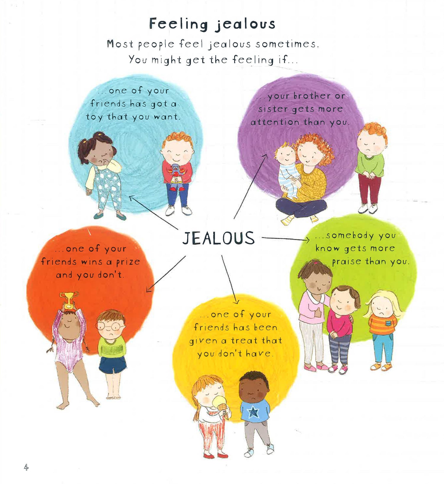 This book focuses on jealousy and all the feelings that this common emotion stirs up. The two stories, told from a child's point of view, help children identify and understand their feelings through everyday scenarios. Through questions for the reader, and advice, this books helps guide them and gently teaches them how to manage or overcome jealousy. With fun, engaging illustrations the book reassures young readers, providing them with vocabulary to express and understand their feelings as they grow up and encounter different situations. Supporting text for parents and teachers ensure children get the most from the books.