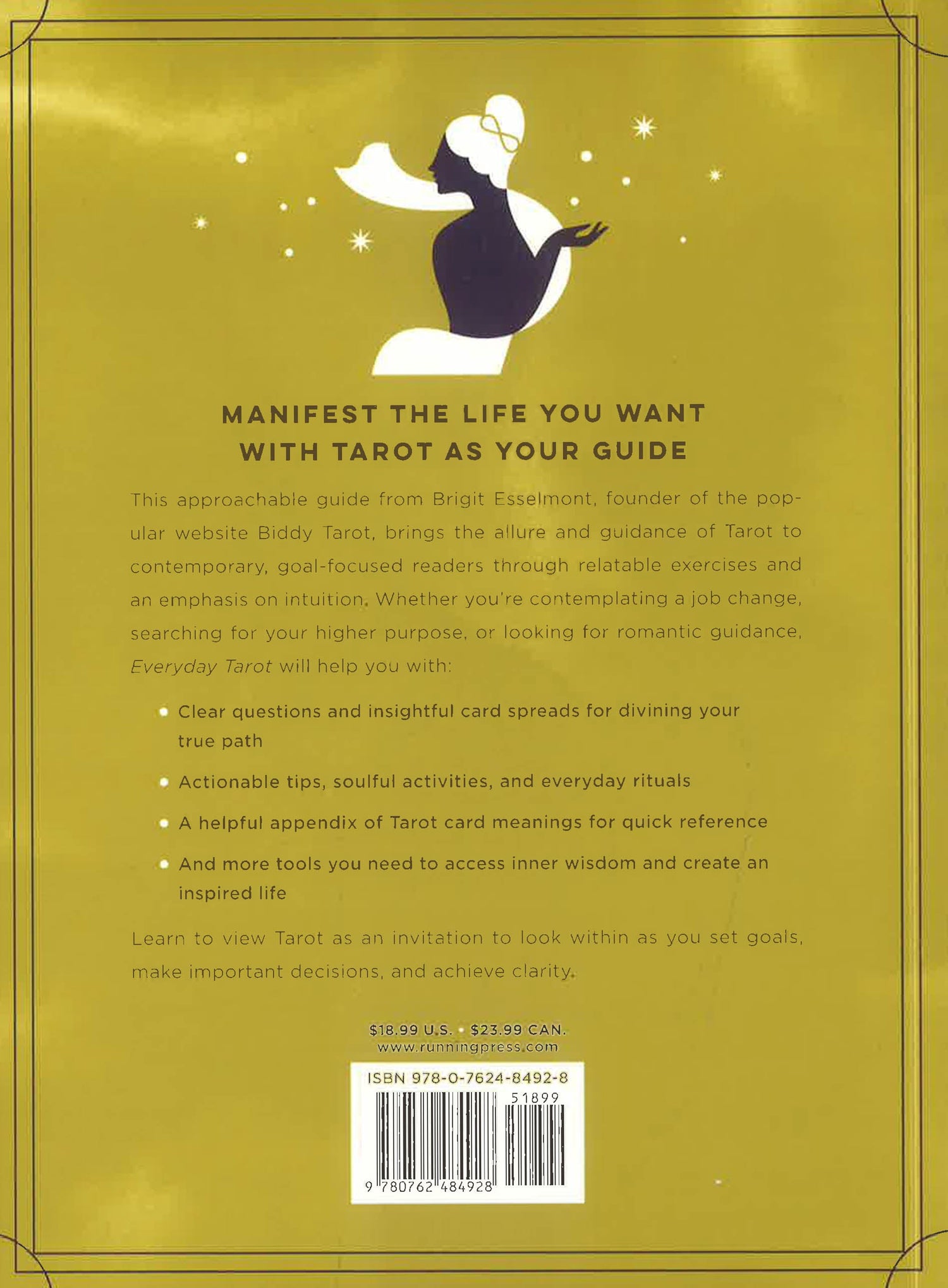 This unique book draws on the knowledge of Brigit Esselmont, the founder of Biddy Tarot. Her distinctive approach blends Tarot with personal growth, creating an actionable wellness practice that speaks to contemporary readers. Beginning with Esselmont's personal story of leaving behind a corporate career to pursue a more grounded, passionate life, this beautiful and useful volume explains how Tarot really works, with a focus on how we approach the cards and draw on our inner wisdom for guidance. Everyday Tarot moves through concrete areas of life (career, romantic relationships, major goals) and incorporates exercises and sample spreads, alongside a quick-start guide to reading the cards that reinforces big picture concepts and builds confidence as readers begin creating powerful and positive change.