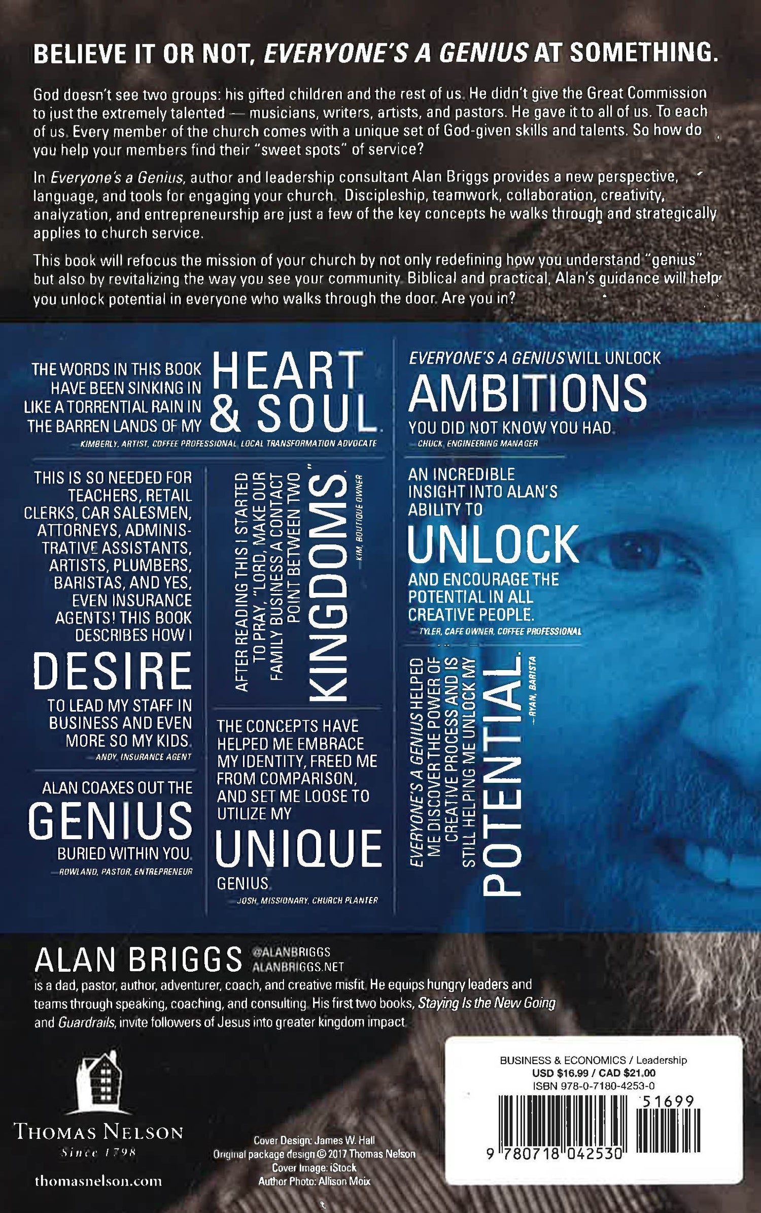 In Everyone's a Genius, author, pastor, and leadership consultant Alan Briggs, shares his belief that bringing out the abilities of often overlooked Christians-those whose unique skill sets are not as easily identifiable-remains a key component that will determine the church's impact in this and coming generations. This is an inspiring look at how we can more effectively motivate Christians to leverage their personal abilities for Christ.