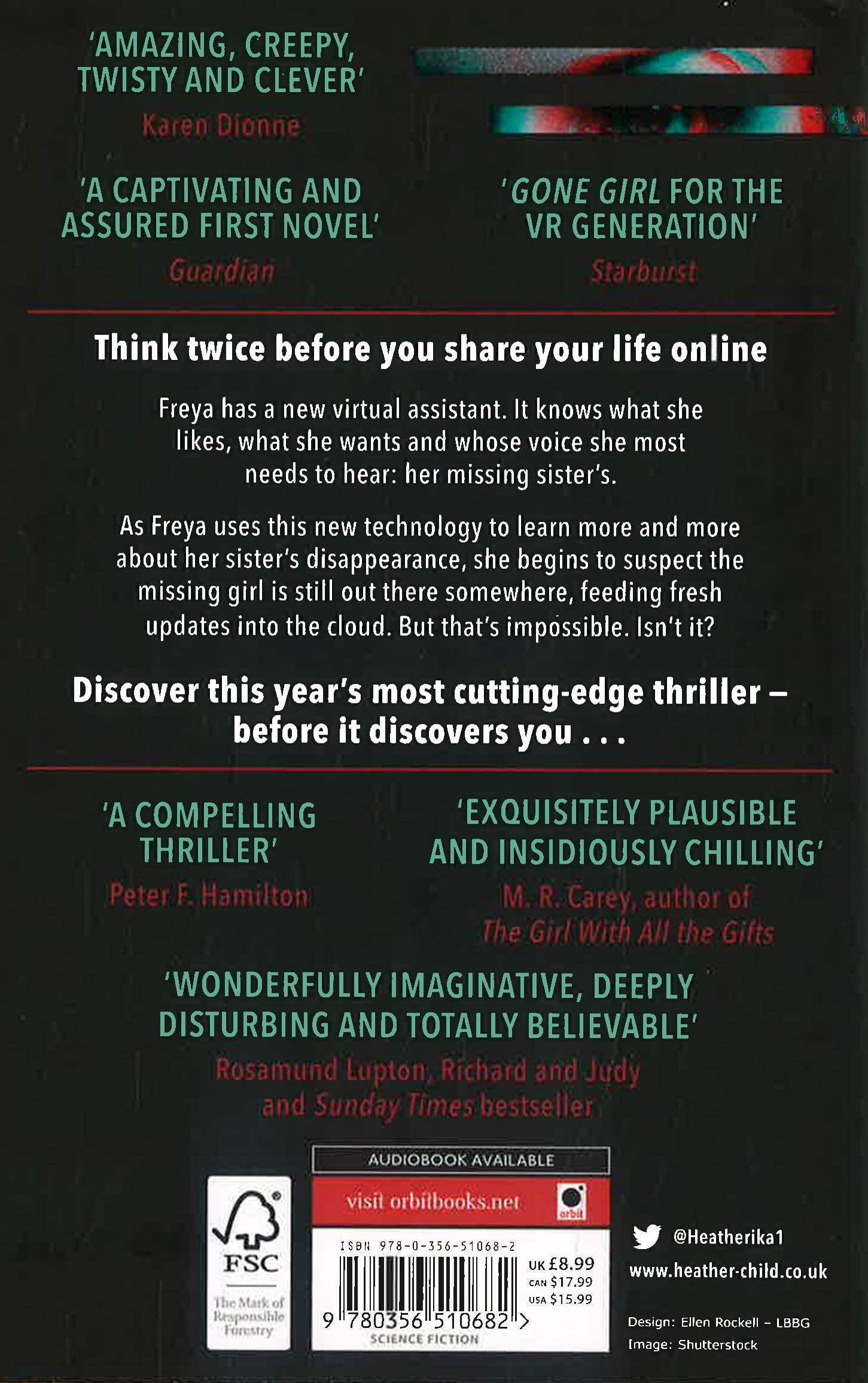 It adopts her sister's personality, recreating her through a life lived online. But this virtual version of her sister knows things it shouldn't be possible to know. It's almost as if the missing girl is still out there somewhere, feeding fresh updates into the cloud. But that's impossible. Isn't it?