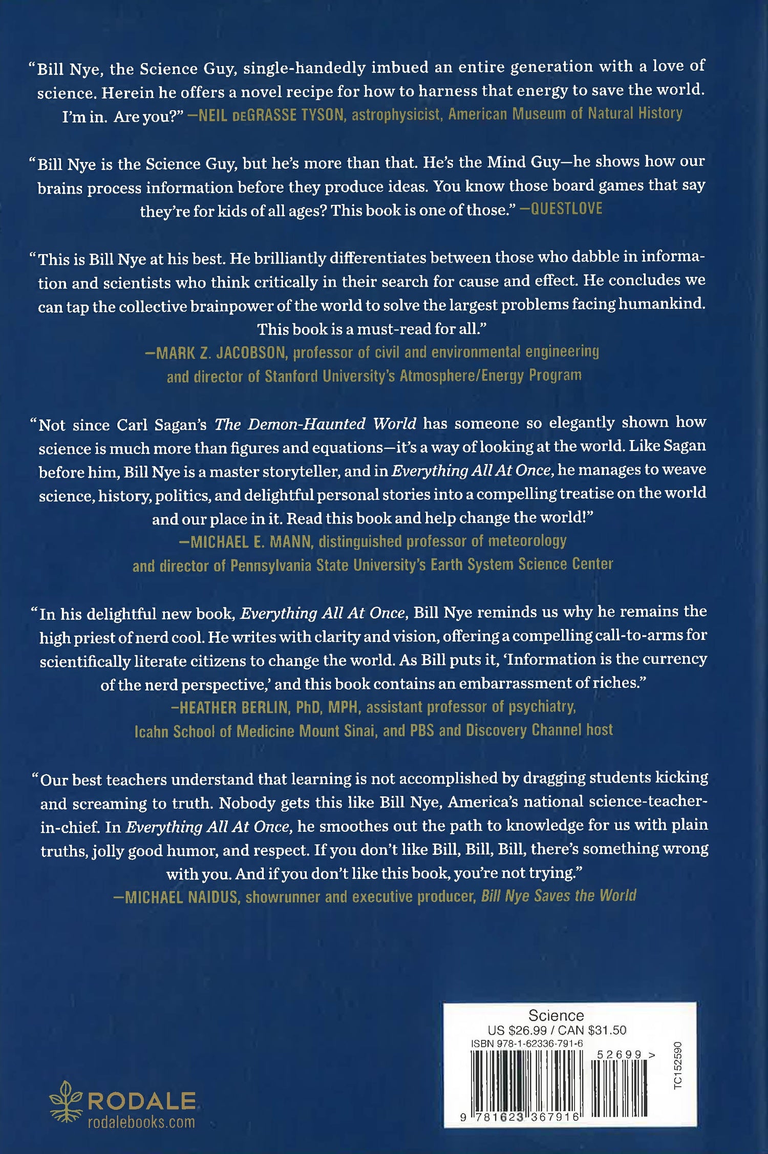 Everyone has an inner nerd just waiting to be awakened by the right passion. In Everything All at Once, Bill Nye will help you find yours. With his call to arms, he wants you to examine every detail of the most difficult problems that look unsolvable—that is, until you find the solution. Bill shows you how to develop critical thinking skills and create change, using his “everything all at once” approach that leaves no stone unturned.