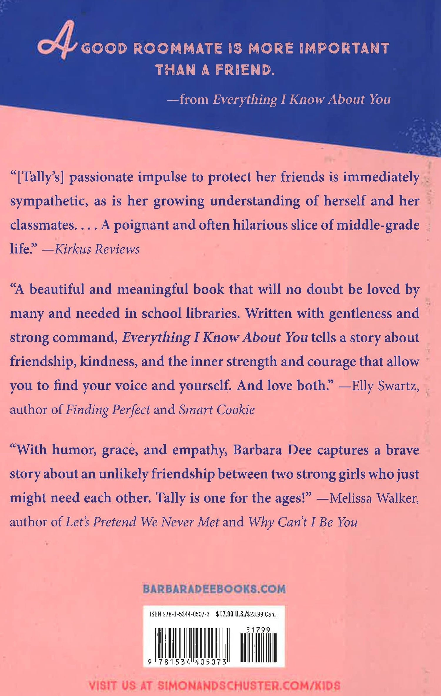 During a class trip to DC, twelve-year-old Tally and her best friends, Sonnet and Caleb (a.k.a. Spider) are less than thrilled when they are assigned roommates and are paired with kids who are essentially their sworn enemies. For Tally, rooming with ?clonegirl? Ava Seely feels like punishment, rather than potential for fun.But the trip is full of surprises. Despite a pact to stick together as much as they can, Sonnet pulls away, and spider befriends Marco, the boy who tormented him last year. And Marco just might ?like? Tally?what?s that about?But the uneasy peace in Ava and Tally?s room is quickly upended when Tally begins to suspect something is off about Ava. She has a weird notebook full of random numbers, and doesn?t seem to eat anything during meals. When Tally confronts Ava, Ava threatens to share an embarrassing picture of Tally with the class if Tally says anything to anyone about her suspicions. But will Tally endanger more than her pride by keeping her secret?This is one class trip full of lessons Tally will never forget: how to stay true to yourself, how to love yourself and embrace your flaws, and how being a good friend can actually mean telling a secret you promised to keep?