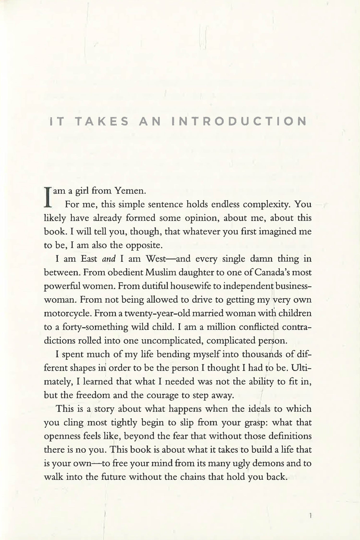 Navigating two worlds, Al-harazi has struggled to find her own way between East and West, religion and belief, freedom and obligation, family and desire, love and honour, despair and gratitude, war and war again. With warmth and courageous honesty, she recounts how it is only through gratitude and persistence that we can find happiness and the courage to build the life we want