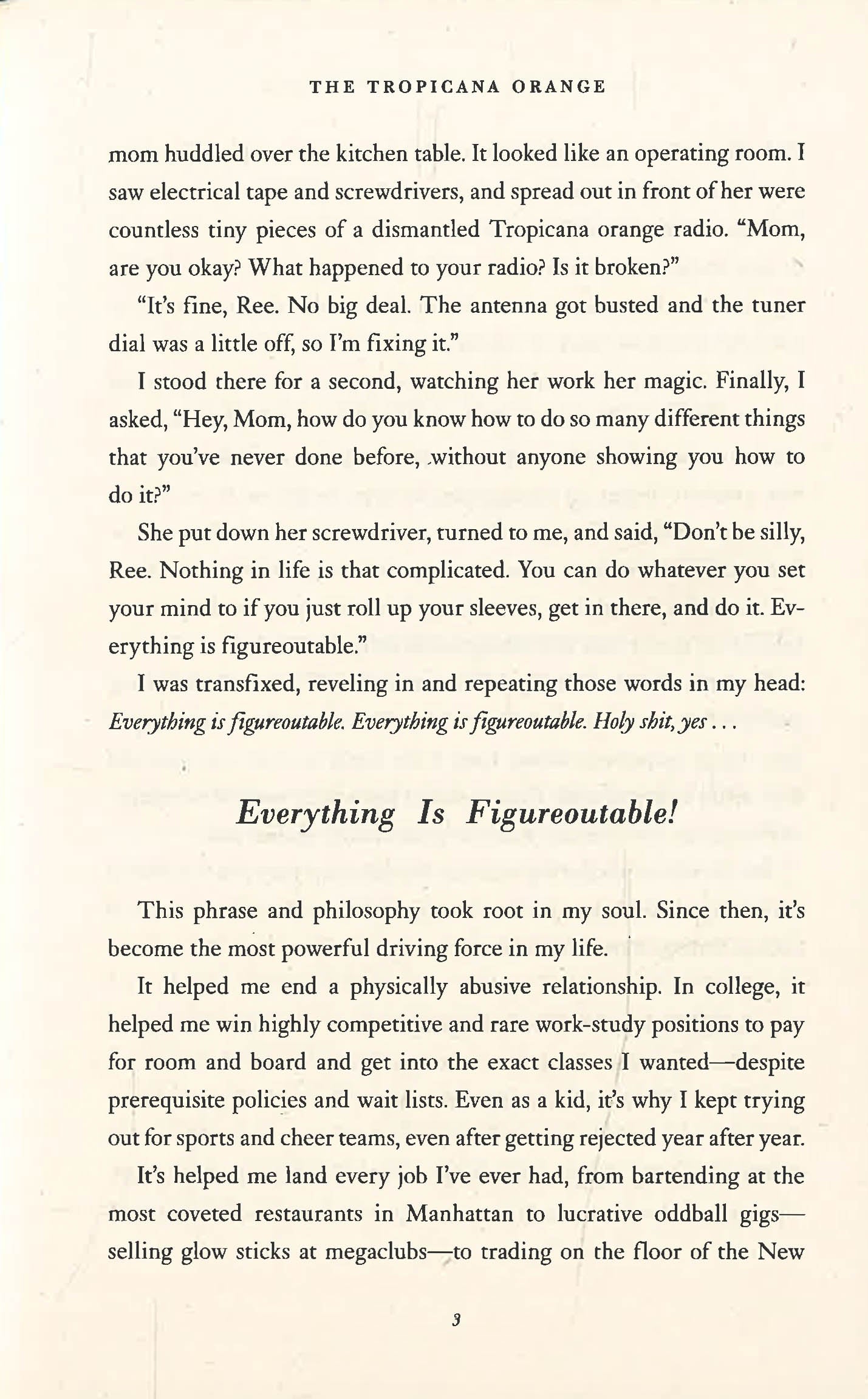This book will change lives' Elizabeth Gilbert Do you ever have trouble finishing what you start? Do amazing ideas come to you all the time but after the initial excitement wanes you struggle to follow through? Whether you want to leave a dead-end job, heal a relationship, grow a business, master your money, or just find two free hours in your day, Everything is Figureoutable will train your brain to think more positively and help you break down any dream into manageable steps. Inside you'll learn: - How to deal with criticism and imposter syndrome - Why it's crucial that you strive for progress not perfection - How to bounce back from failure - How to overcome a lack of time and money You'll also hear triumphant stories of everyday people using the everything is figureoutable philosophy to transform their life. Everything is Figureoutable is a practical, actionable discipline. And it's about to make you unstoppable!