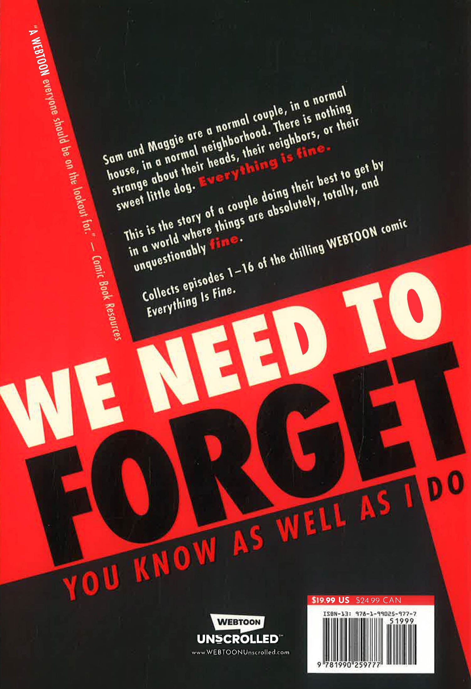 Sam and Maggie are a normal couple, in a normal house, in a normal neighbourhood. There is nothing strange about their heads, their neighbours, or their sweet little dog. Everything is fine. This is the story of a couple doing their best to get by in a world where things are absolutely, totally, and unquestionably fine. Collecting episodes 1–16 of the WEBTOON comic Everything Is Fine.