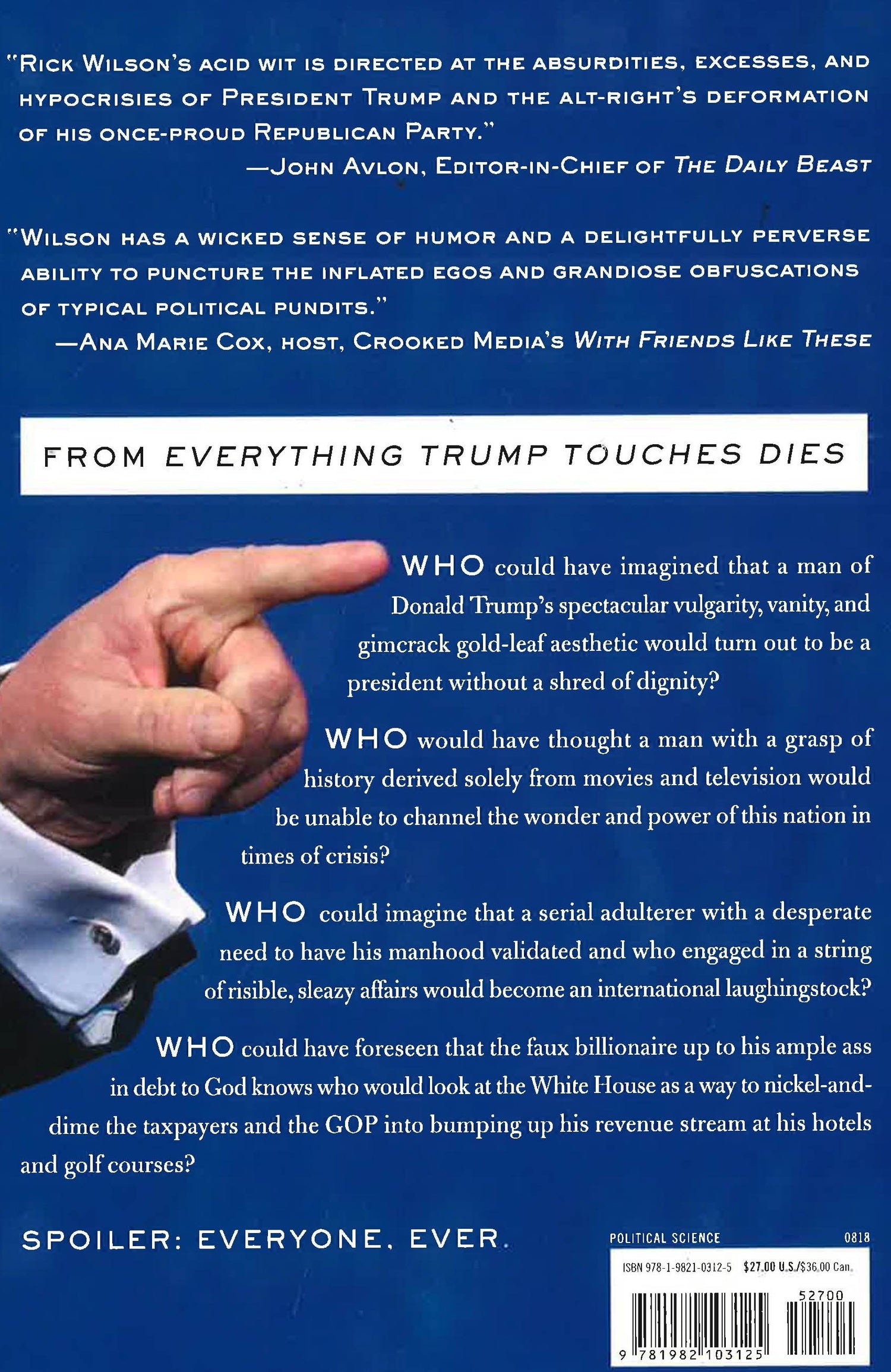 A respected, long-time Republican strategist, ad-maker, and contributor for The Daily Beast, skewers the disease that is destroying the conservative movement and burning down the GOP: Trumpism.In Everything Trump Touches Dies, political campaign strategist and commentator Rick Wilson brings his darkly funny humor and biting analysis to the absurdity of American politics in the age of Trump. Wilson mercilessly exposes the damage Trump has done to the country, to the Republican Party he served for decades, and to the conservative movement that has abandoned its principles for the worst President in American history.No left-winger, Wilson is a lifelong conservative who delivers his withering critique of Trump from the right. A leader of the Never Trump movement, he warns his own party of the political catastrophe that leaves everyone involved with Trump with reputations destroyed and lives in tatters.Wilson unblinkingly dismantles Trump’s deceptions and the illusions to which his supporters cling, shedding light on the guilty parties who empower and enable Trump in Washington and the news media. He calls out the race-war dead-enders who hitched a ride with Trump, the alt-right basement dwellers who worship him, and the social conservatives who looked the other way.Everything Trump Touches Dies deftly chronicles the tragicomic Trump story from the early campaign days through the shock of election night, to the inconceivable trainwreck of Trump's first year. Rick Wilson provides not only an insightful analysis of the Trump administration, but also an optimistic path forward for the GOP, the conservative movement, and the country. Combining insider political analysis, blunt truths, and black humor, Everything Trump Touches Dies is perfect for those on either side of the aisle who need a dose of unvarnished reality, a good laugh, a strong cocktail, and a return to sanity in American politics.