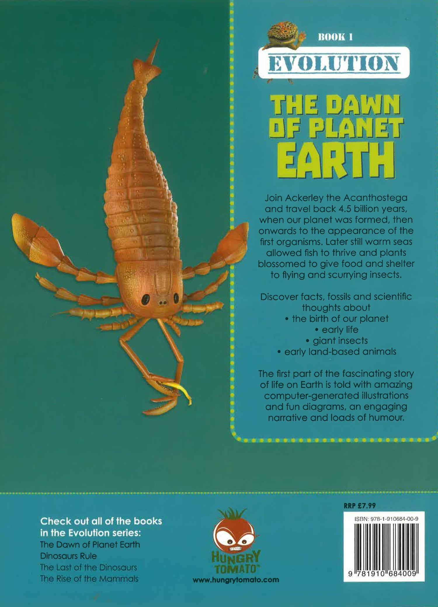 Join Ackerley the Acanthostega and travel back 4.5 billion years when our planet was formed then onwards to the appearance of the first organisms. Later still warms seas allowed fish to thrive and plants blossomed to give food and shelter to flying and scurrying insects. Discover facts fossils and scientific thoughts about the birth of our planet early life giant insects early land-based animals The first part of the fascinating story of life on Earth is told with amazing computer-generated illustrations and fun diagrams an engaging narrative and loads of humour.
