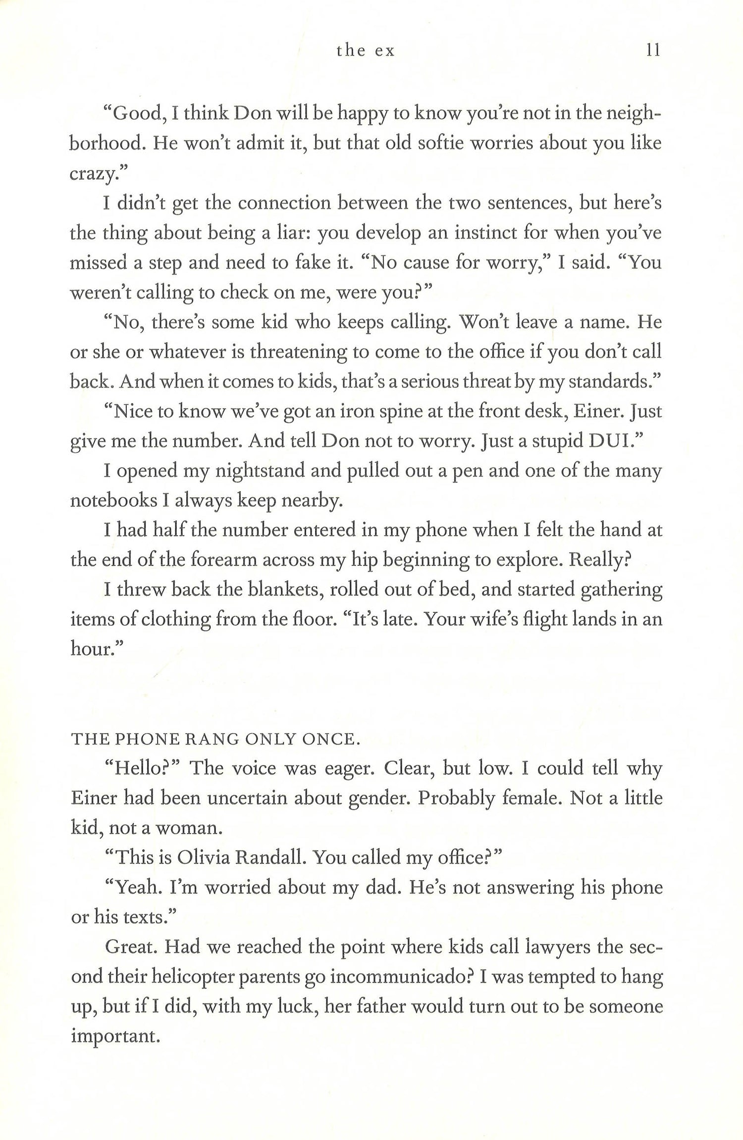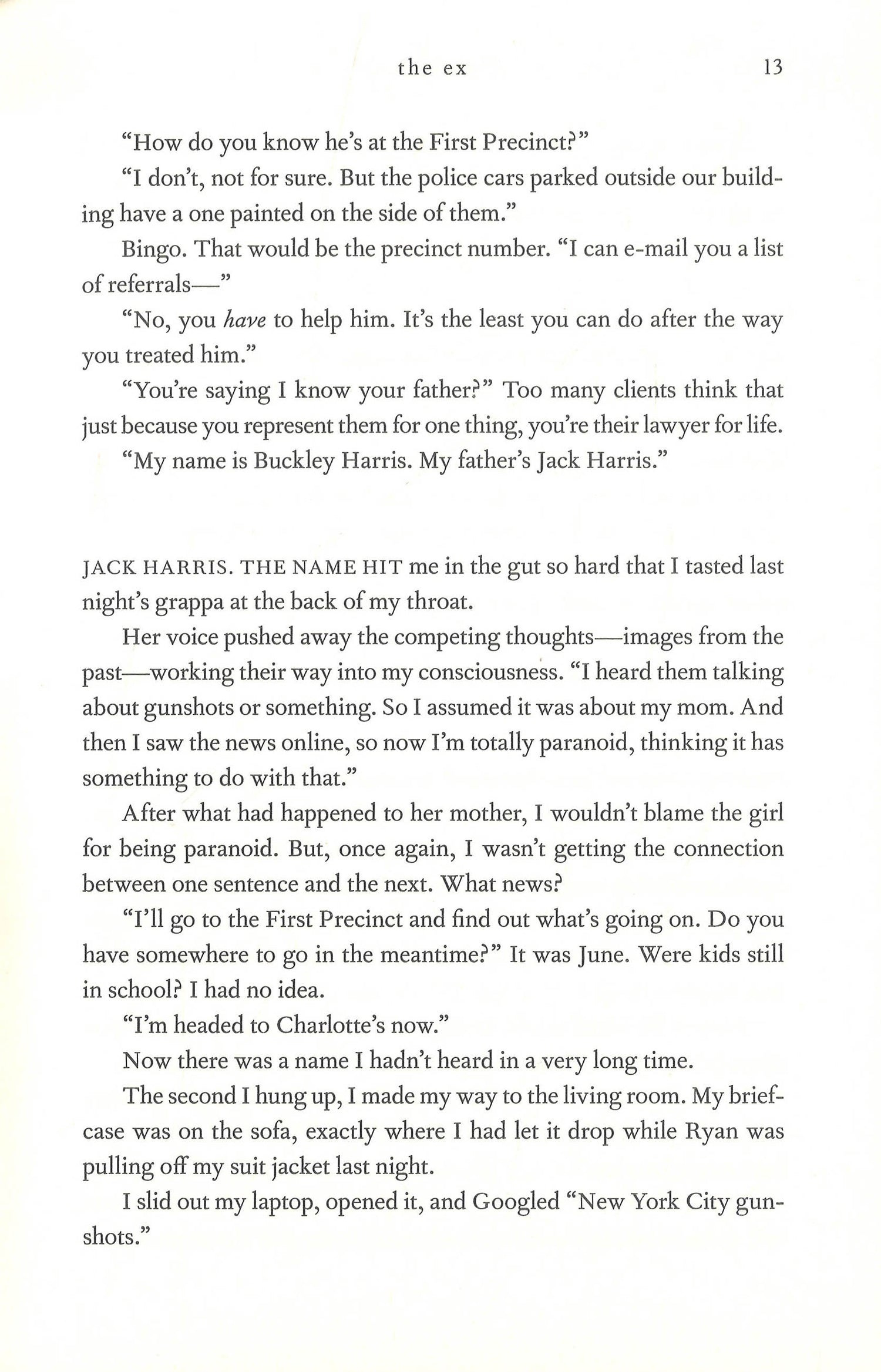 In this breakout standalone novel of suspense in the vein of Gone Girl and The Girl on a Train, a woman agrees to help an old boyfriend who has been framed for murder - but begins to suspect that she is the one being manipulated.Widower Jack Harris has resisted the dating scene ever since the shooting of his wife Molly by a fifteen-year-old boy three years ago. An early morning run along the Hudson River changes that when he spots a woman in last night’s party dress, barefoot, enjoying a champagne picnic alone, reading his favorite novel. Everything about her reminds him of what he used to have with Molly. Eager to help Jack find love again, his best friend posts a message on a popular website after he mentions the encounter. Days later, that same beautiful stranger responds and invites Jack to meet her in person at the waterfront. That’s when Jack’s world falls apart. Olivia Randall is one of New York City’s best criminal defense lawyers. When she hears that her former fiancé, Jack Harris, has been arrested for a triple homicide - and that one of the victims was connected to his wife’s murder - there is no doubt in her mind as to his innocence. The only question is who would go to such great lengths to frame him - and why? For Olivia, representing Jack is a way to make up for past regrets, to absolve herself of guilt from a tragic decision, a secret she has held for twenty years. But as the evidence against him mounts, she is forced to confront her doubts. The man she knew could not have done this. But what if she never really knew him?