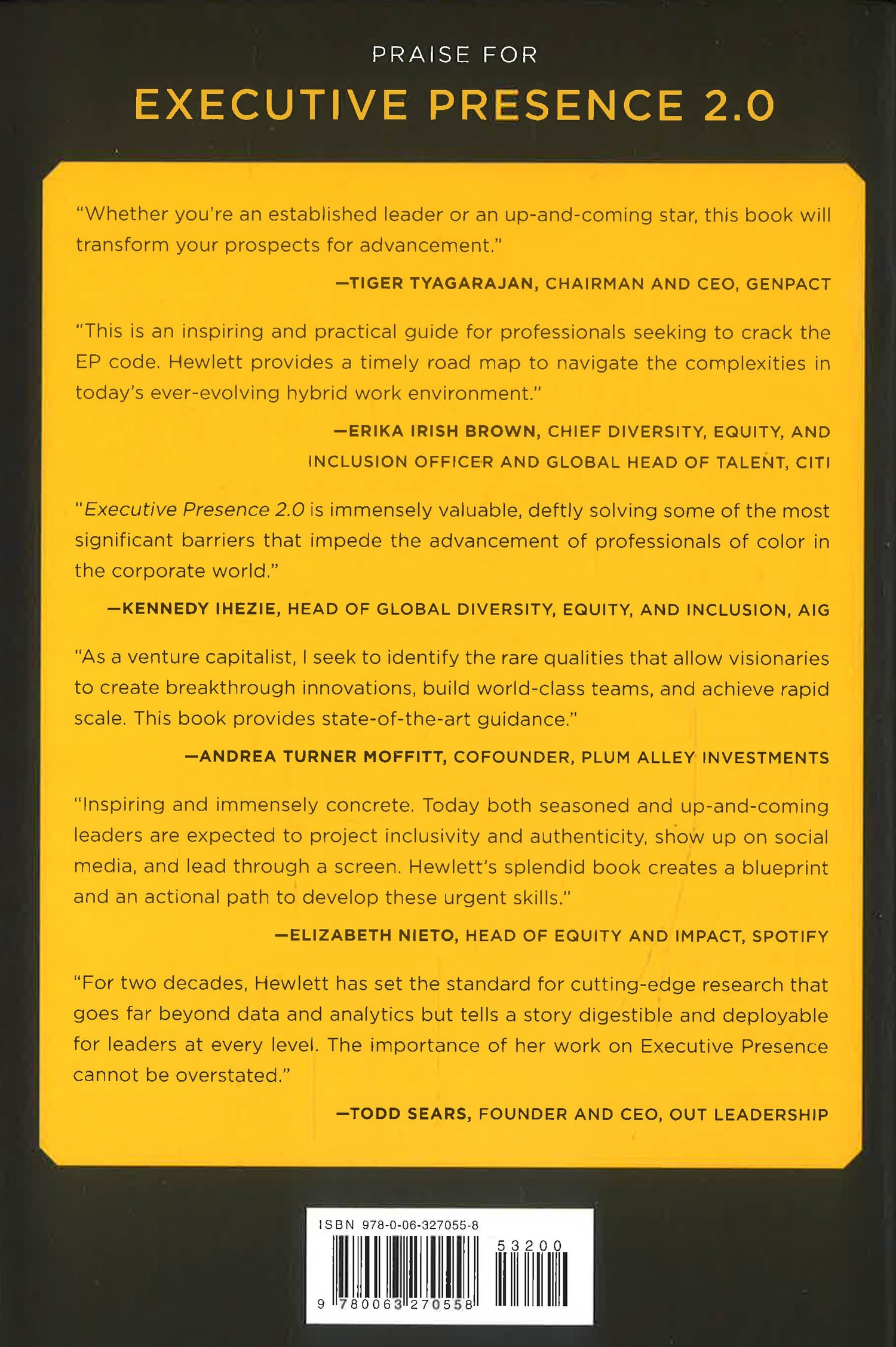 Executive Presence became a classic. Translated into seven languages, it’s helped tens of thousands of ambitious, accomplished professionals (women and men, Blacks and whites) to fast-track their careers. Chuck Robbins (CEO of Cisco), and Thasunda Brown Duckett (CEO, TIAA), are among the leaders who recommend this book for any up-and-comer seeking to rise through the ranks and do something extraordinary with their lives.