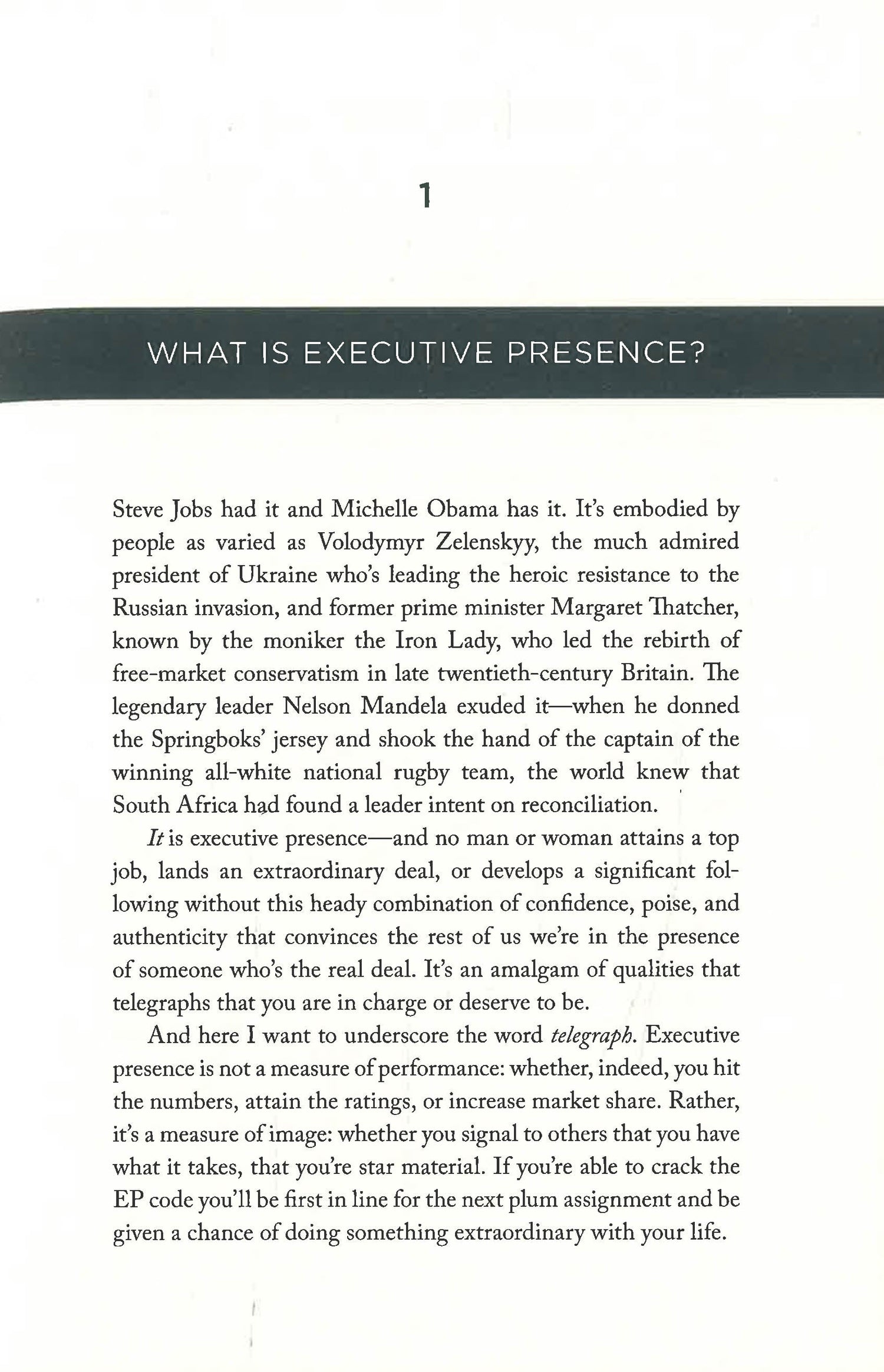 Hewlett’s most potent message, ten years ago and now, is that EP is eminently learnable. You don’t need to have the voice of James Earl Jones, the communication skills of Steve Jobs, or the athleticism of Michelle Obama to ace EP. You merely have to arm yourself with the tools and tactics contained in these pages.