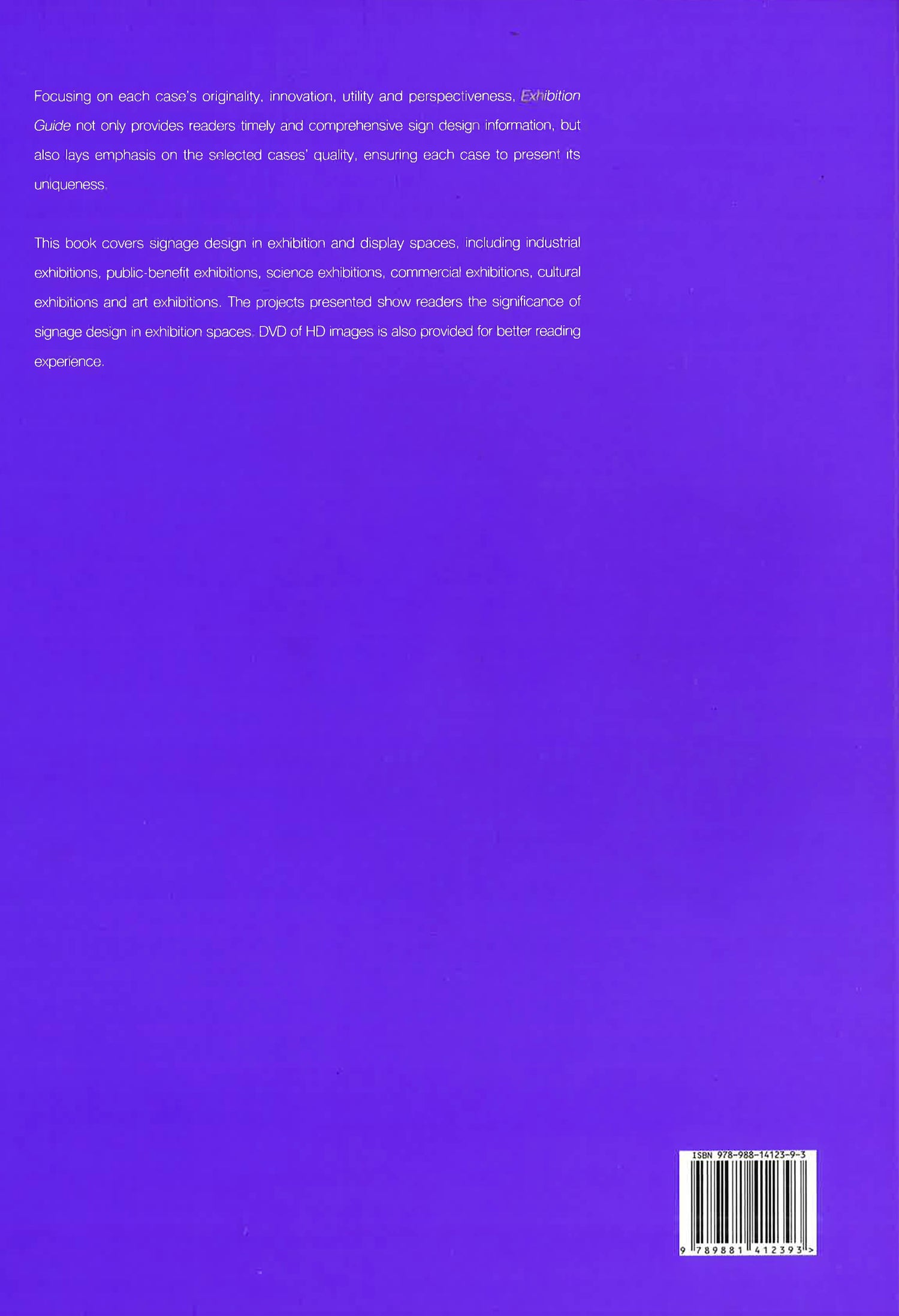 Focusing on each case's originality, innovation, utility, and perspectiveness, Exhibition Guide not only provides readers timely and comprehensive sign design information, but also lays emphasis on the selected cases' quality, ensuring each case to present its uniqueness. This book covers signage design in exhibition and display spaces, including industrial exhibitions, public-benefit exhibitions, science exhibitions, commercial exhibitions, cultural exhibitions and art exhibitions. The projects presented show readers the significance of signage design in exhibition spaces. A DVD of HD images is also provided for better reading experience